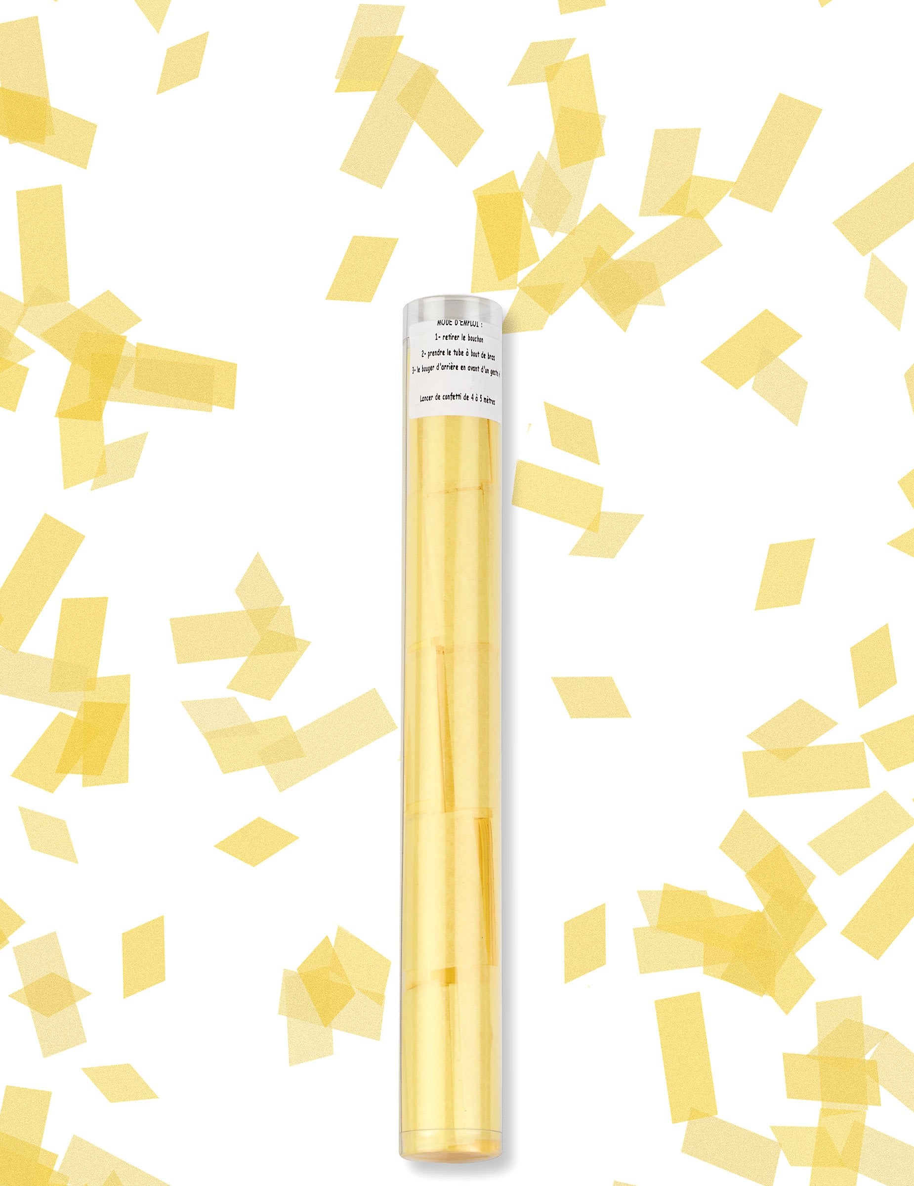 Ez a tubo-jet egy ágyú, amely téglalap alakú, sárga színű konfettivel rendelkezik. Körülbelül 27 cm hosszúságú. A 4-5 méteres konfetti dobás megszerzéséhez egyszerűen elegendő lesz a kupak eltávolításához, a csövet kar hosszában, majd visszahelyezi egy élénk gesztus elé. Ez a tubo-jet tökéletes lesz, hogy színt hozzon a nyári partira vagy a színes születésnapjára!