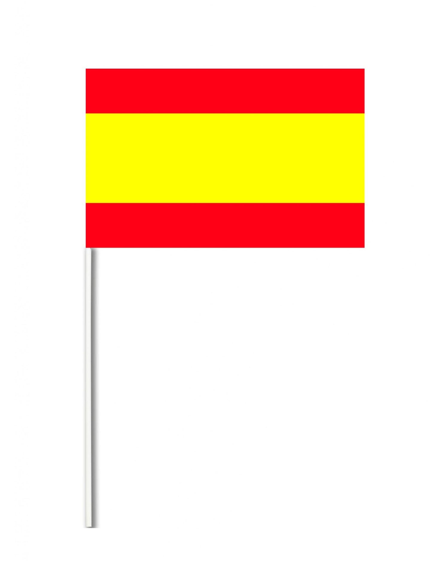 Ez a zászló papírból készül. Körülbelül 14 x 21 cm -t mér. Ezt a tricolor zászlót Spanyolország színeiben nyomtatják. Van egy kis fehér botja, amely lehetővé teszi, hogy könnyen megtartsa. Ez a spanyol zászló tökéletes lesz a támogató légkör előállításához a labdarúgó -estén vagy egy ünnepi rendezvényen!