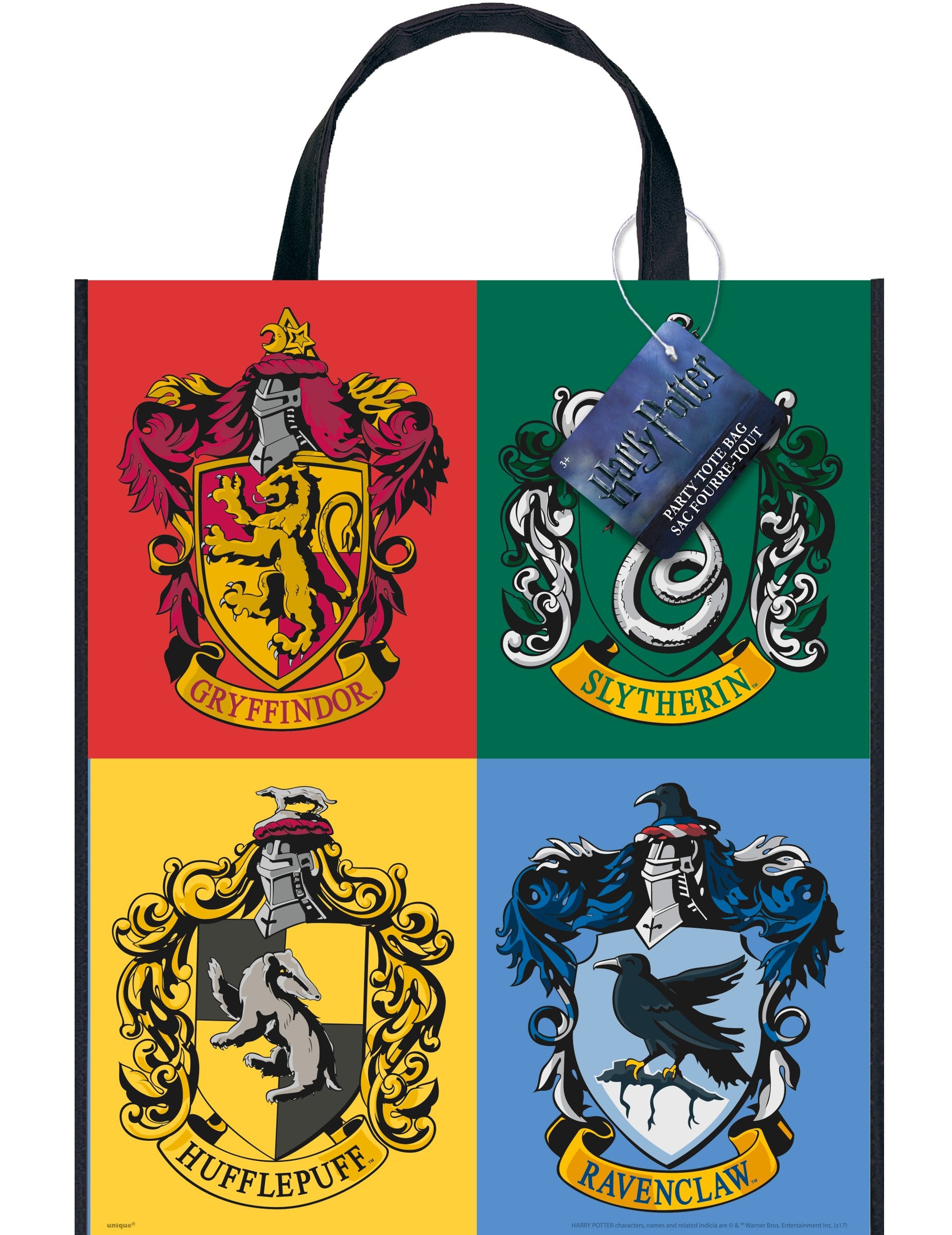 Ez az ajándéktáska a hivatalos Harry Potter licenc alatt található. Műanyag és körülbelül 33 x 28 cm. Ezen a táskán megtalálhatja a 4 ház (Gryffindoor, Mardekár, Hufflepuff, Ravenclaw) 4 logót. Egy kis fekete fogantyú van jelen, hogy megtartsa a táskát. Tegye az ajándékát ebbe a táskába, adja meg egy Harry Potter rajongónak, és örömmel fogja!