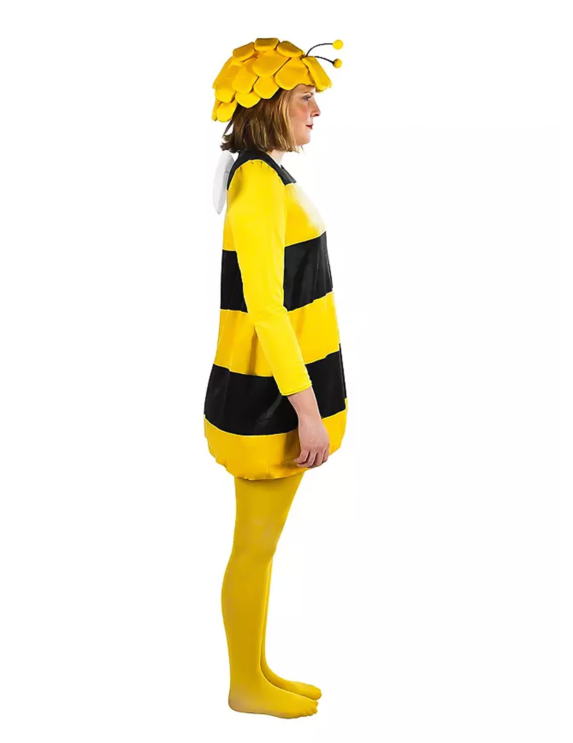 Ennek a Maya nőnek a méhek jelmeze hivatalos engedély alá tartozik. Ez magában foglalja a szárnyakkal rendelkező ruhát. A ruha ujjatlan, fekete és sárga színű csíkos, bársonyos hatással. Kis szárnyak vannak jelen a vállak szintjén, hogy utánozzák a híres méheket. A ruha rövid és puffadt. Ez a méh jelmez tökéletes lesz az állatok vagy a karnevál témájára álcázott estére!