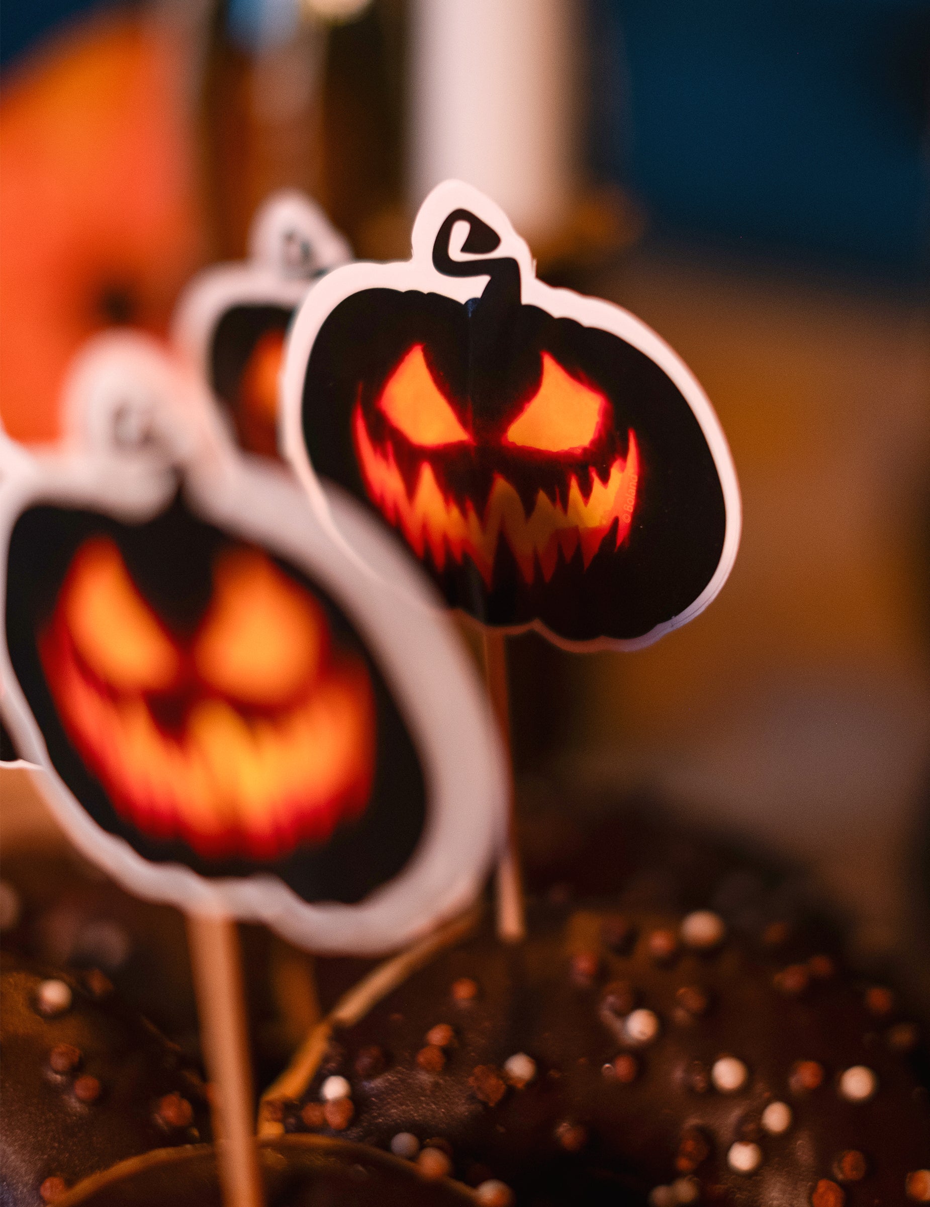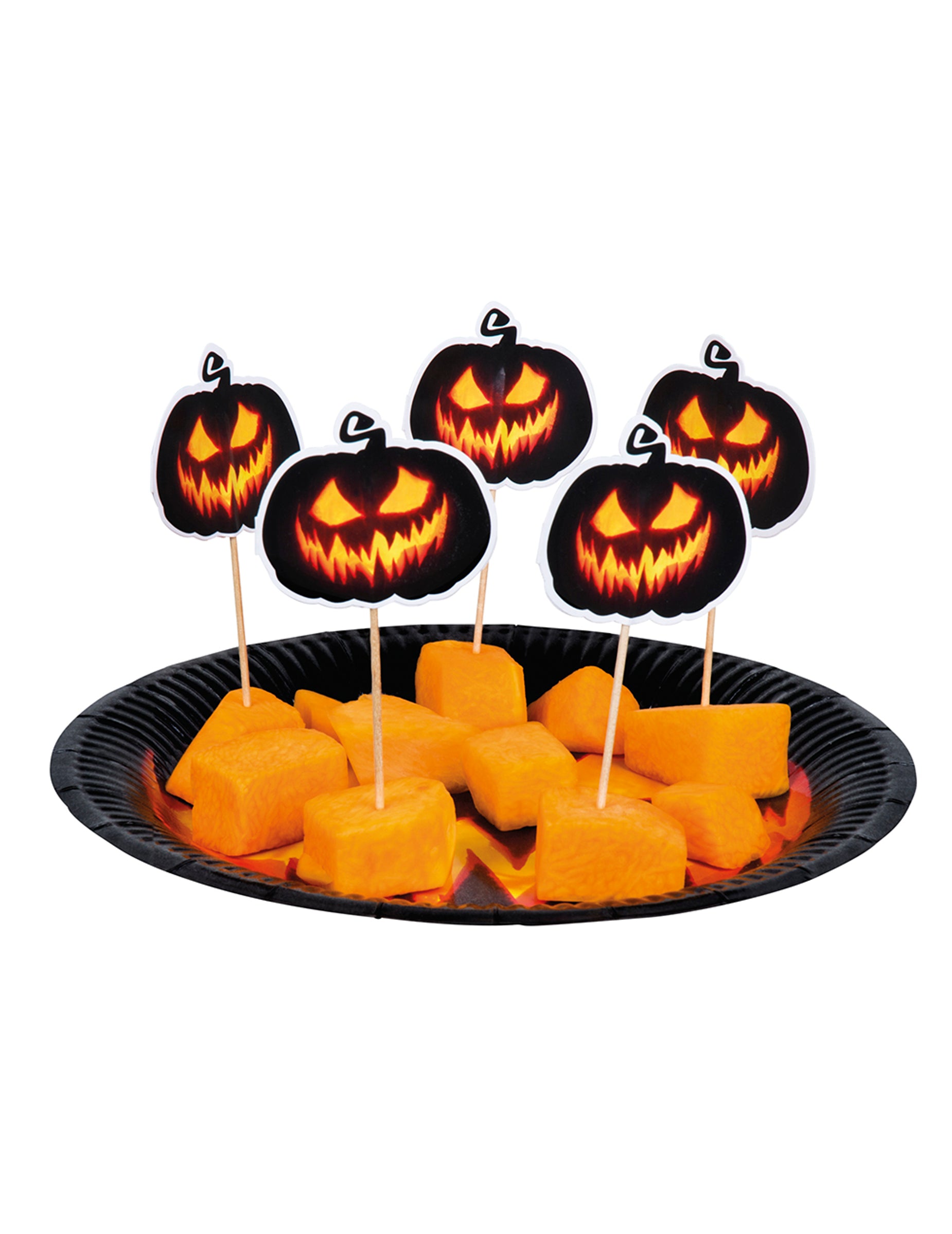 Ez a tétel 12 tök csúcsot tartalmaz, amelyek körülbelül 12 cm -t mérnek. Ezek a koktélcsúcsok fából készülnek. Karton matricával díszítik őket. Egy gonosz fekete tököt képviselnek egy pillantással és a tüzes mosollyal. Ezek a félelmetes tökcsúcsok tökéletesen szolgálnak az aperitif kiszolgálására a Halloween estén.