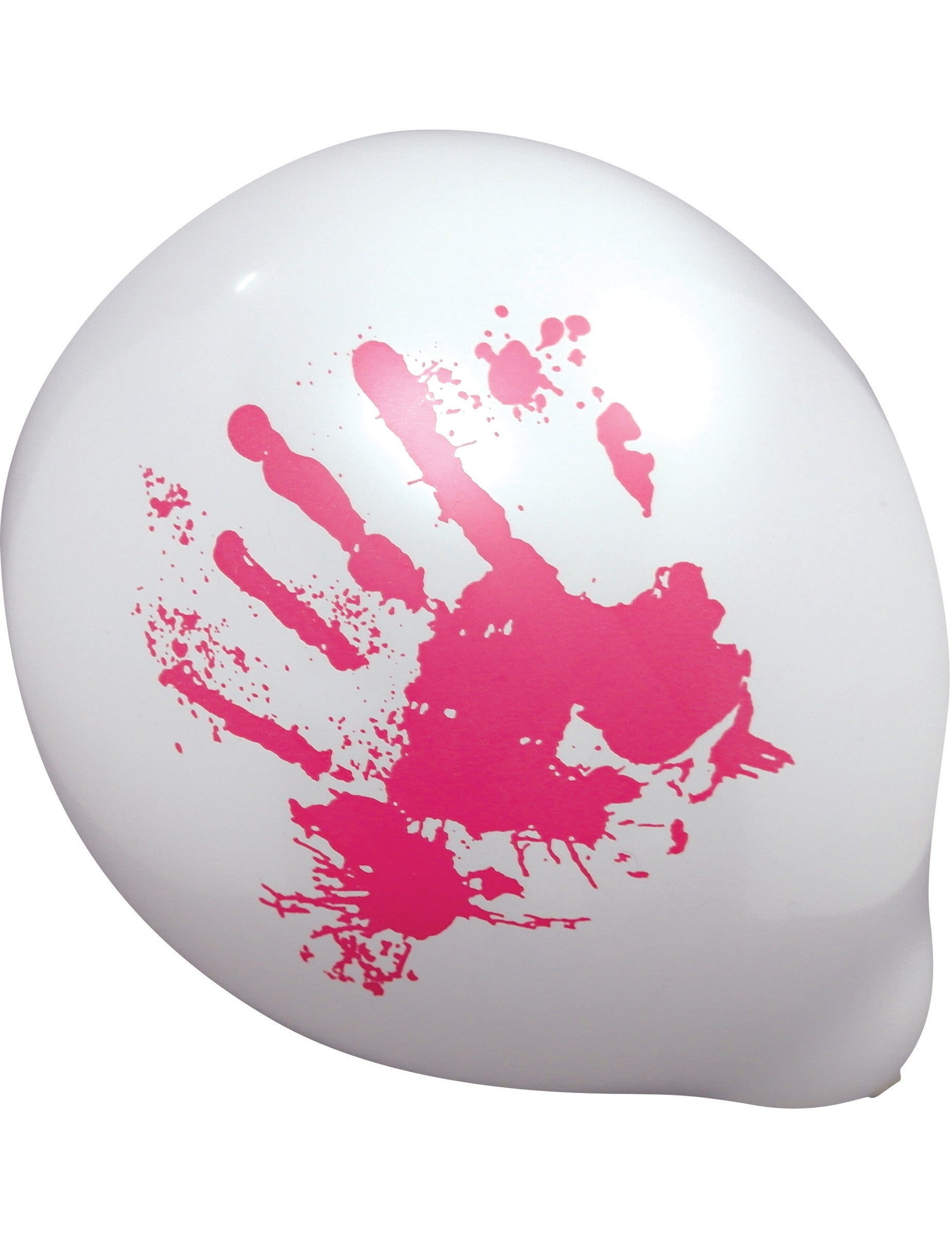 Ez a tétel 10 léggömbből áll. A léggömbök fehérek, véres kézzel nyomtatva. Körülbelül 23 cm -t mérnek. Ezek a véres léggömbök tökéletesek lesznek a belső terek díszítéséhez Halloween alatt, vagy egy estére a horror témájáról.