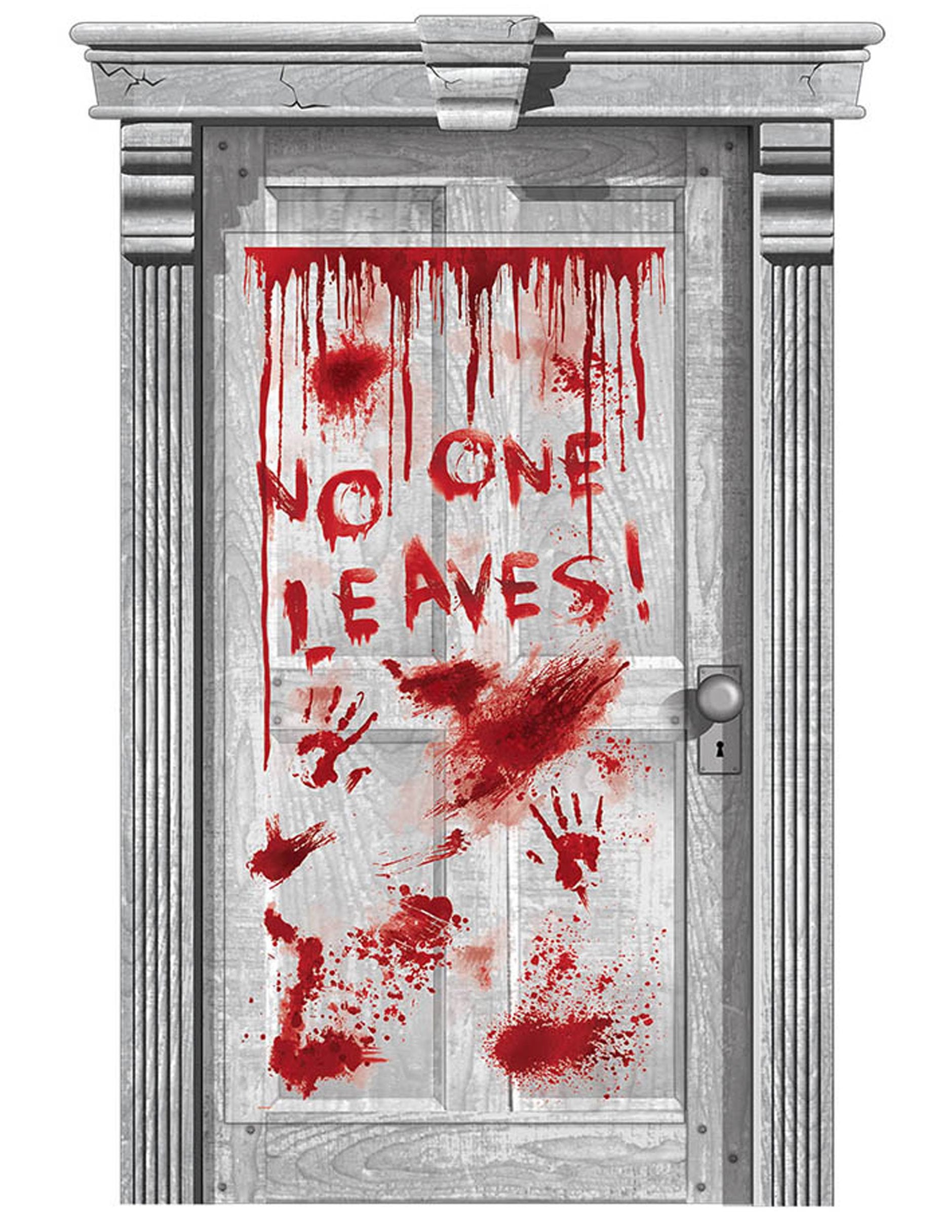 Ez a tétel a műanyag fólia ajtó díszítéséből áll. Ez a dekoráció körülbelül 165 x 85 cm. Félig átlátszó, vér, kéz nyomtatványai vannak, valamint a "Senki sem hagyja el!" A ragasztószalagoknak vagy ágyneműknek köszönhetően könnyen lefagyhatja. A vendégek nem mernek átadni ezt az ajtót, és rémülnek attól, hogy a Halloween alatt belépjenek a szobájába!