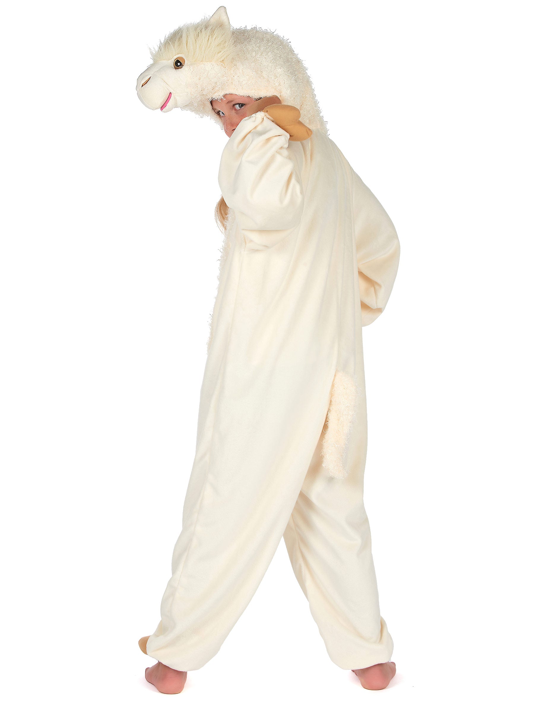 Ez a gyermek lama jelmez egy kapucnis kezeslábast tartalmaz.