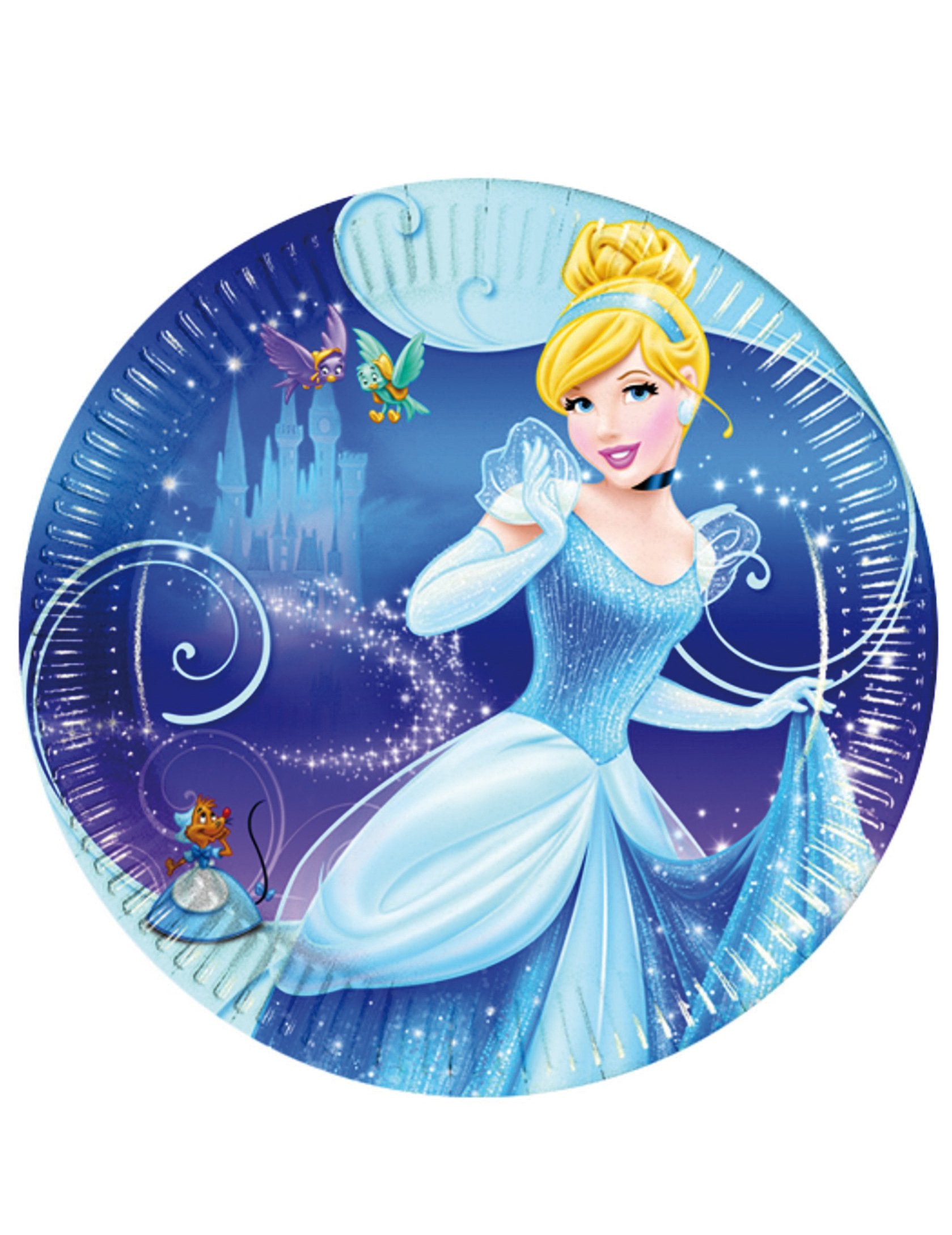 Ez a tétel a Hamupipőke hivatalos licencje szerint 8 lemezt tartalmaz. Kartonból készülnek, és kb. 19 cm átmérőjű. A csodálatos Hamupipőke hercegnő díszíti őket csodálatos golyós ruhájában. A távolban láthatjuk Charming herceg kastélyát. Madarai madarak és egerek szintén jelen vannak a rajzon. Ezek az eldobható lemezek elengedhetetlenek a lánya Hamupipőke születésnapjának megkóstolásához!