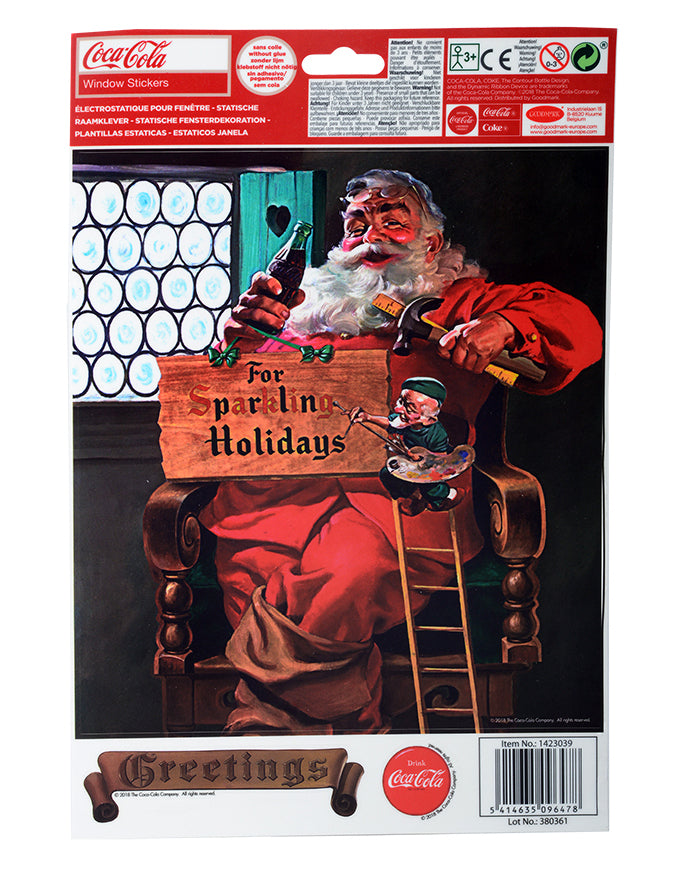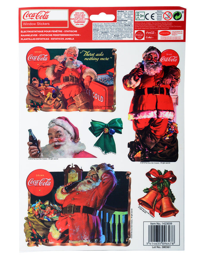 Ez az ön ragaszkodó testület hivatalos Coca-Cola engedély alá tartozik. Ezek a Coca-Cola Mikulás szüreti reprezentációi. Láthatjuk egy üveg Coca-Cola-val, az Impinity-vel egy vörös teherautón egy havas úton, készen áll arra, hogy ajándékokat vagy hülyeségeket kínáljon egy fekete háttérrel rendelkező "Merry Christmas Coca-Cola" panelhez. Véletlenszerűen kapja meg a modellt. Ezek a Mikulás Coca-Cola matricák tökéletesen megfelelnek az ablakok vagy a belső terek díszítéséhez karácsonyra