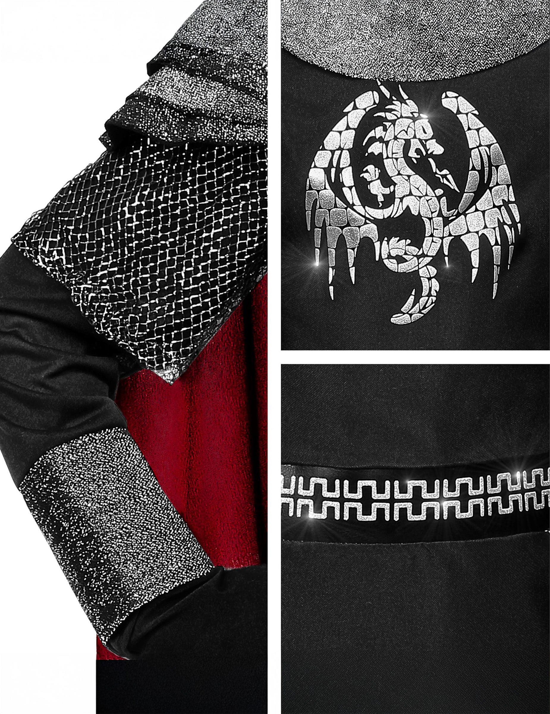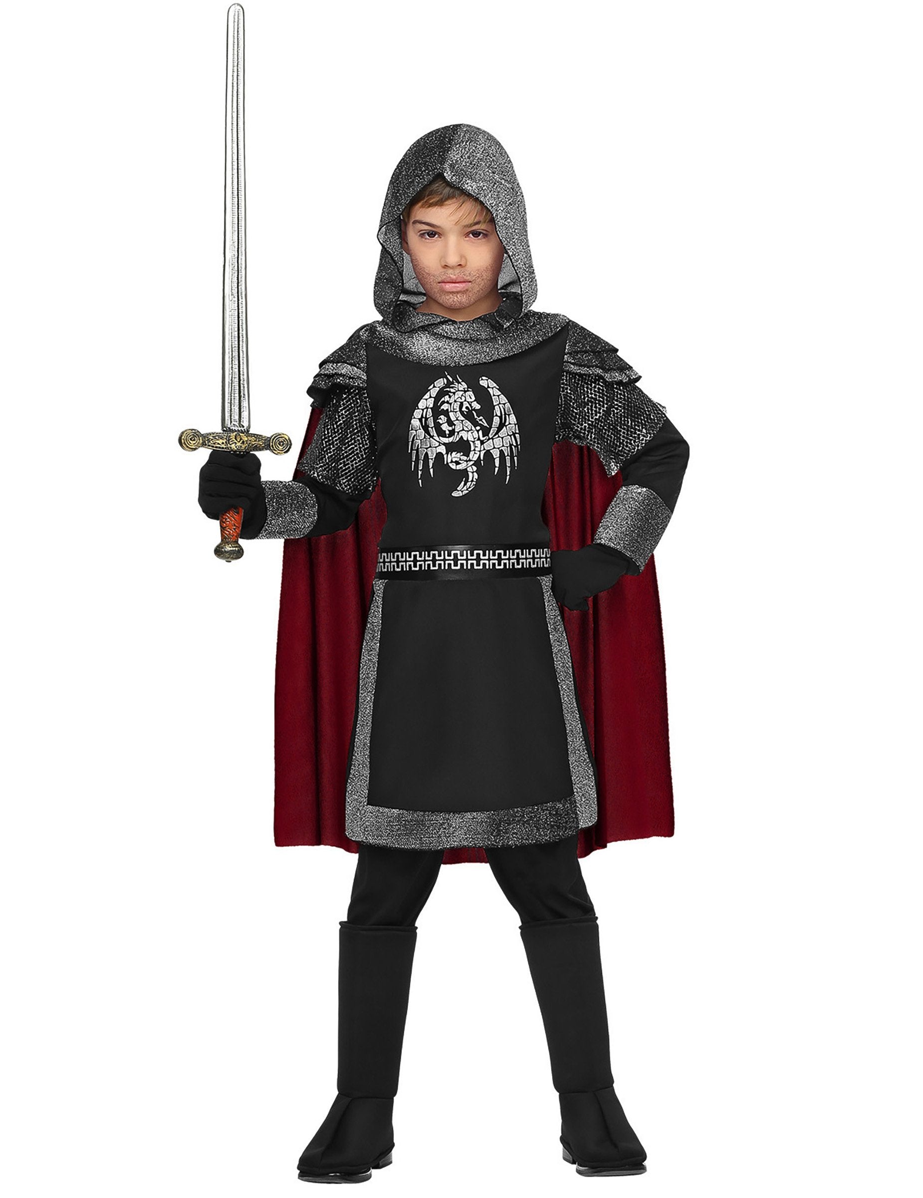Ez gyerek sárkány lovag jelmez tunikából áll köpennyel és kapucnival (kesztyű, csizmavédő és nadrág nem tartozék).