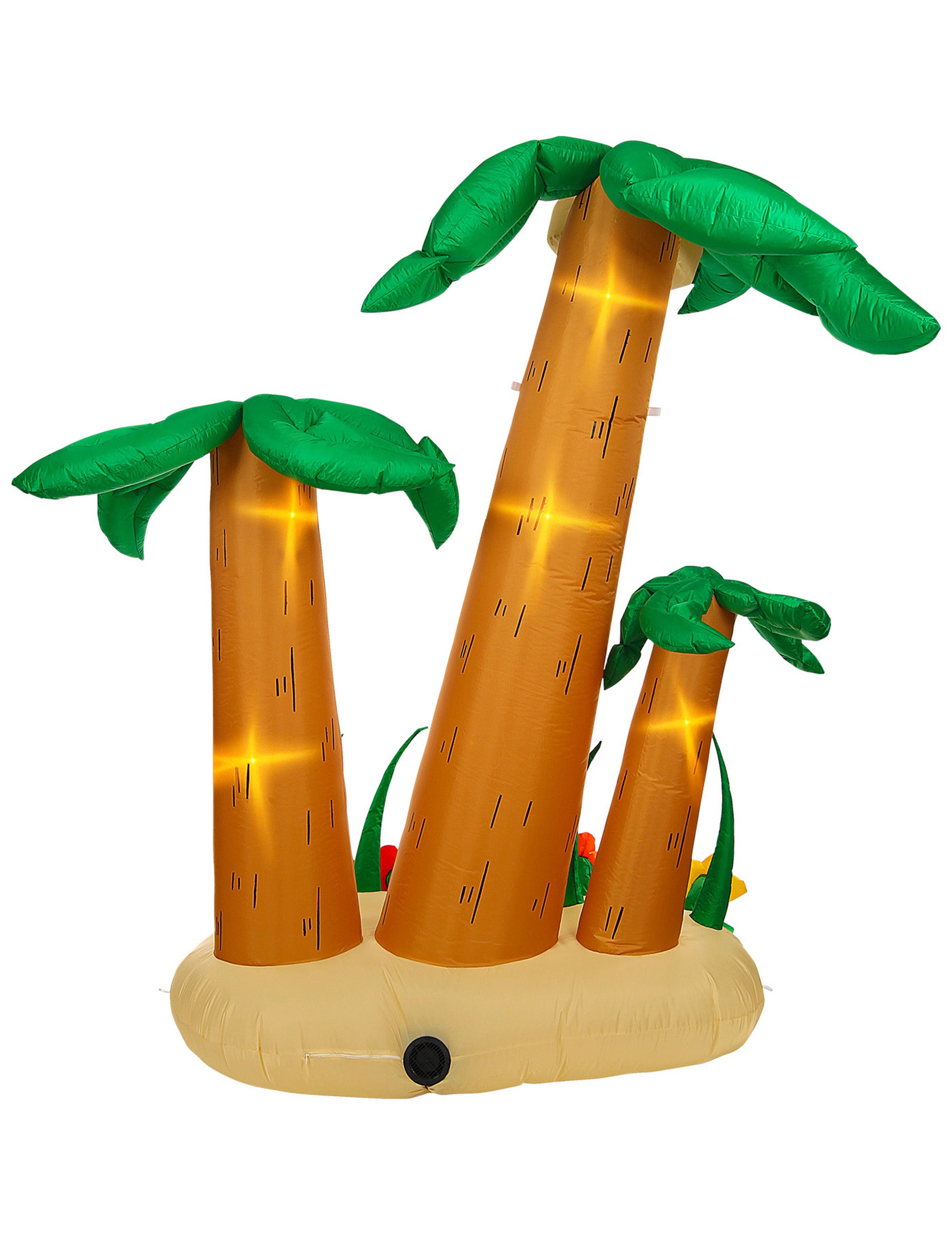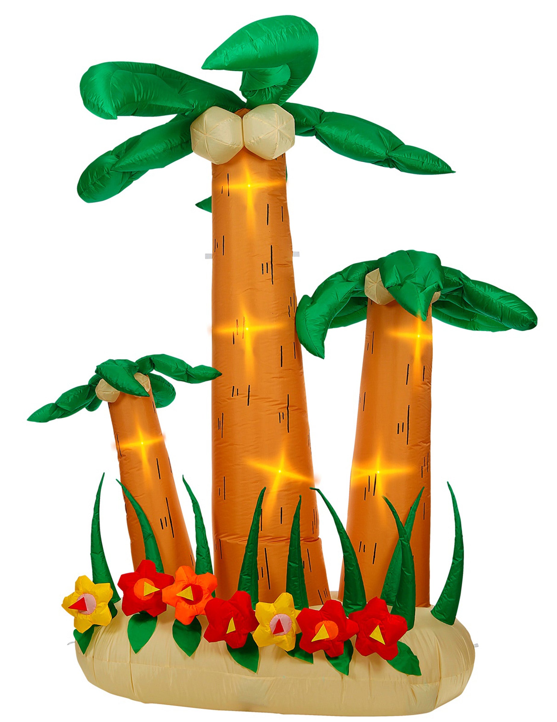 Ez a dekoráció 3 felfújható pálmafát képvisel. Óriás, körülbelül 240 cm magas, ami a legszebb hatású, beleértve a szabadban is. Ez az eredeti dekoráció felfújható, de fényes is! Tehát az éjszakai estén csodálhatja a ragyogó dekoráció kis fényeit. Ezek a felfújható pálmafák tökéletesek lesznek arra, hogy lenyűgözzék barátait egy trópusi témájú parti alkalmával.