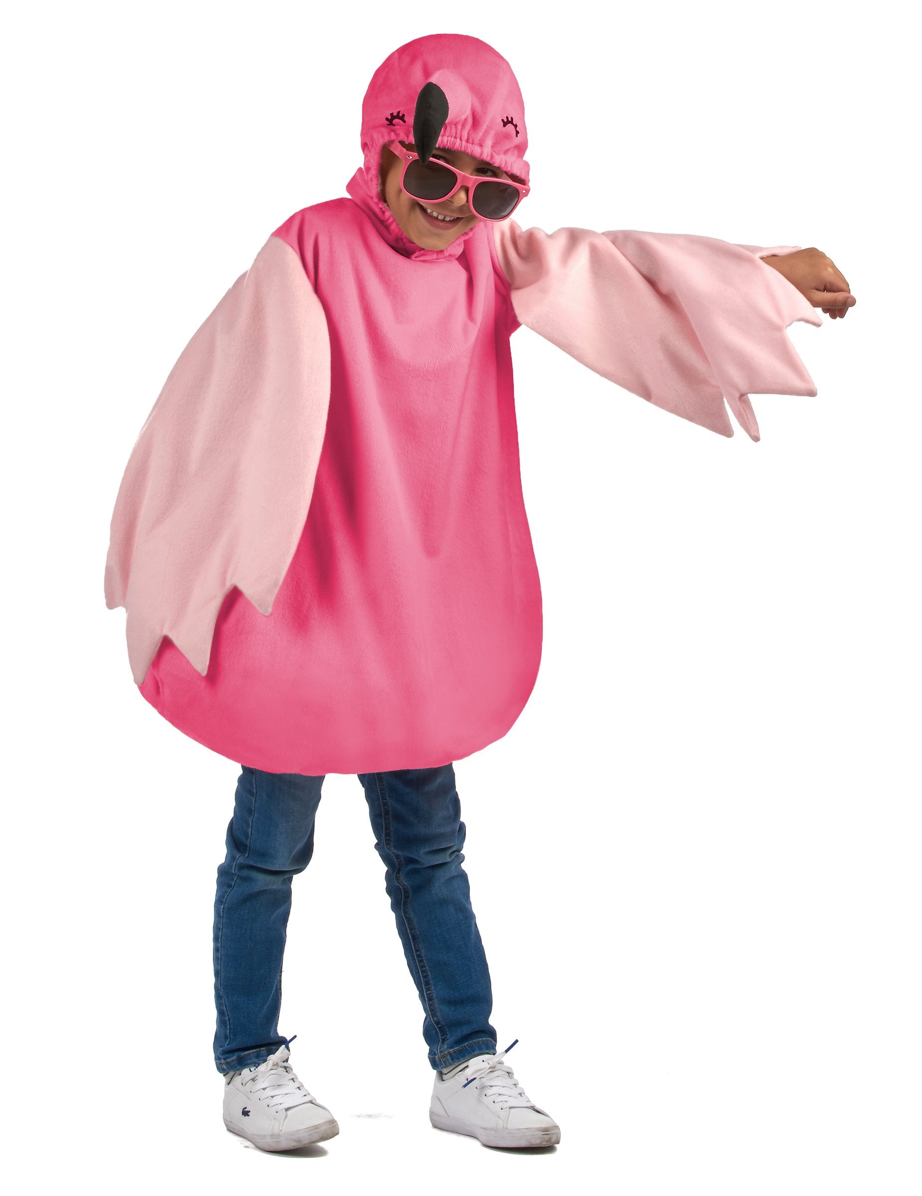 Ez a rózsaszín flamingo jelmez a gyermekek számára kombinációból és motorháztetőből áll. A kombináció rózsaszínű. Ez egy rózsaszín flamingó, tartós, világos rózsaszín szárnyakkal ábrázolja. A kombináció alja bőséges, hogy a gyermeke kényelmes legyen. A motorháztetőt hozzáadják a fejhez, egy rózsaszín flamingó fejét utánozza egy hegyes csőrrel. Ez a lány jelmez tökéletes lesz az állatok vagy a karnevál témájának jelmezes partijára!