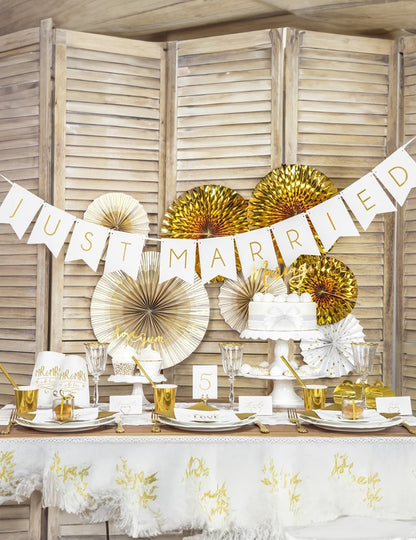 Karton Garland csak feleségül vette fehér és arany 15 x 155 cm