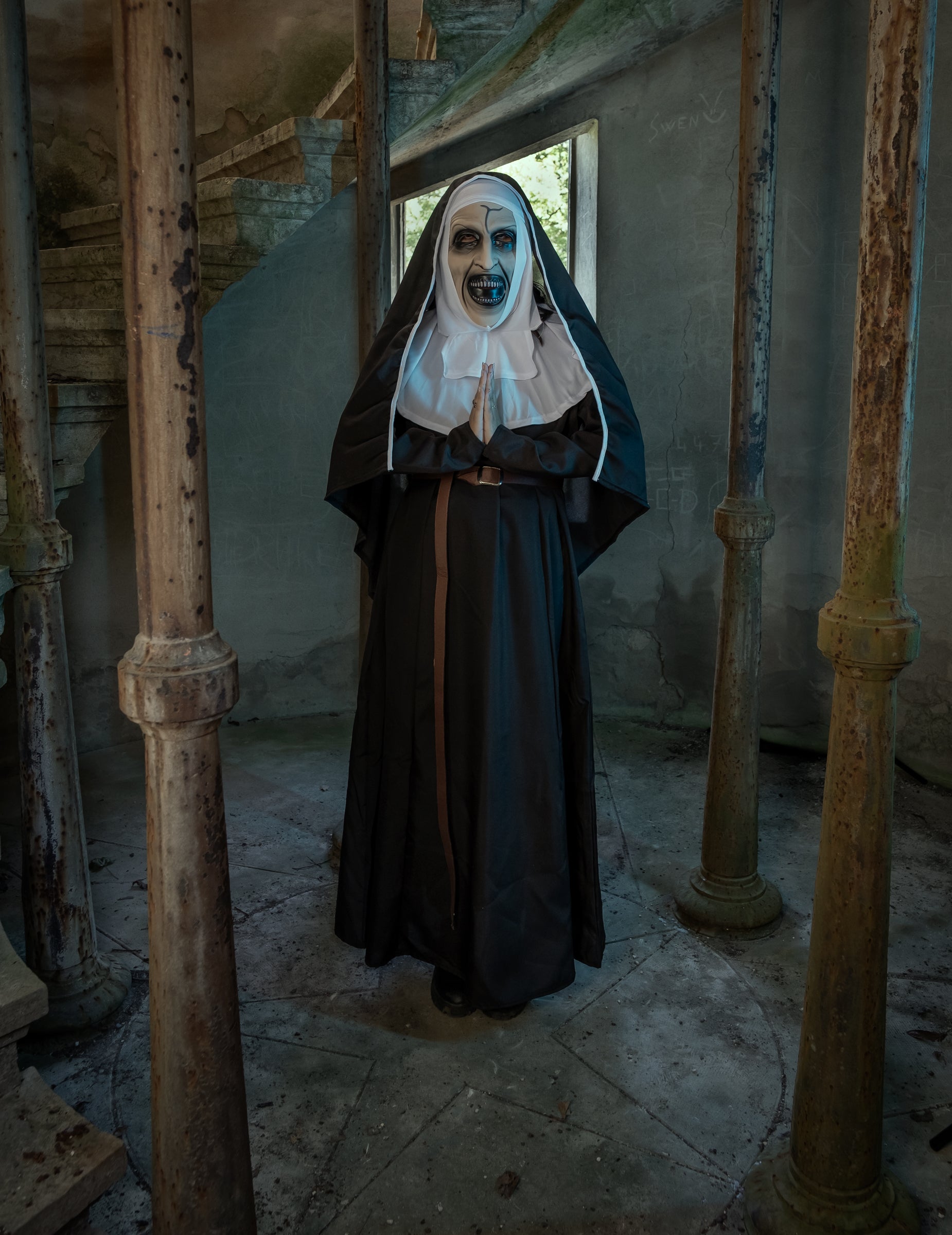 Ennek a tételnek a hivatalos engedély alapján álruhája van. Ez az álruhás ruhából, övből, egy maszkból áll, amelyre varrott fejdísz van. A fekete ruha fekete és hosszú ujjú. Barna övet rögzítenek a ruha fölé, hogy megjelöljék a derékot. Ami a maszkot illeti, a PVC -ben van, és az apáca félelmetes arcát képviseli. A jobb láthatóság érdekében a szem szintjén nyitott. A maszkra varrva egy fekete szövet sapkát, hogy még több realizmust álcázhassanak. Ez a jelmez tökéletes lesz, hogy megijesztse szeretteit a Halloween parti alkalmából!