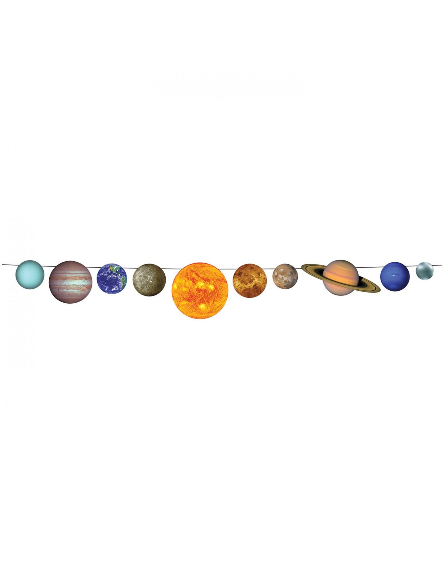 Ez a kartonfarm a Naprendszer témáján szerepel. Körülbelül 23 x 243 cm -re méri, és a Naprendszer bolygói díszítik: Föld, Mars, Saturn ... Ez a Garland tökéletes lesz a születésnapi dekoráció befejezéséhez a tér témájában.