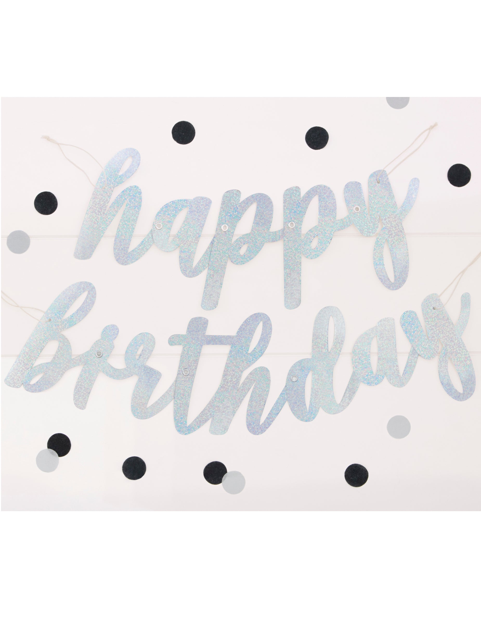 Apportez une touche scintillante à votre événement grâce à cette guirlande cartonnée. D'une longueur de 84 cm, elle déploie le message « happy birthday » dans une finition argentée à paillettes. Cet accessoire festif est parfait pour magnifier votre décoration d'anniversaire avec élégance.