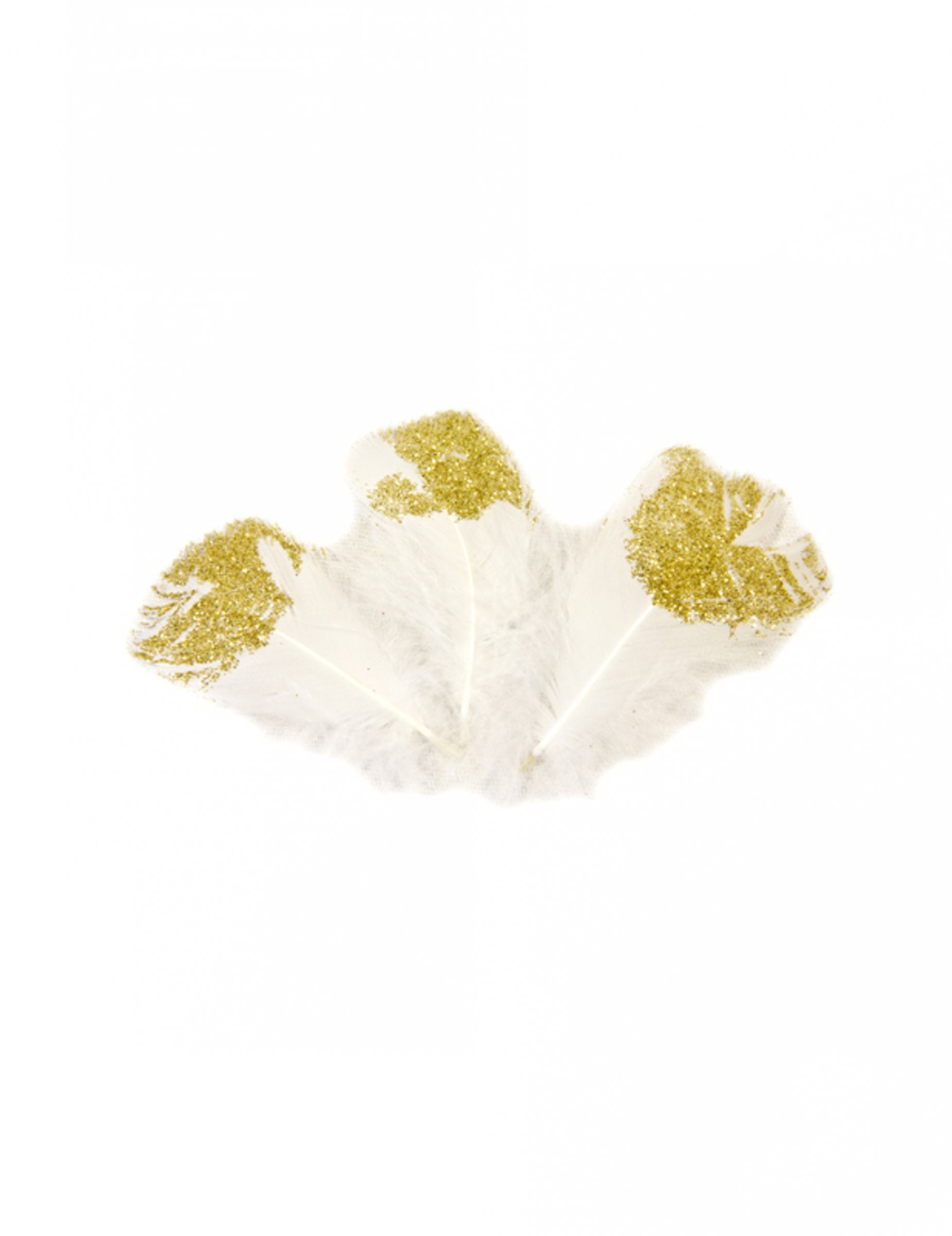 25 fehér és aranyozott csillogó toll 7,5 cm