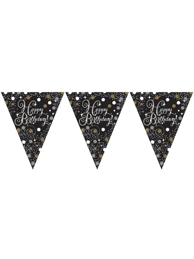 Ez girland Az ünnepi látványosság közel 4 méter hosszú és 21 zászlóból áll. cm fehér, arany és ezüst konfettivel díszítve, a " felirattalBoldog születésnapotEz a kiegészítő ideális az elegáns hangulat megteremtéséhez és a kényelem biztosításához. csillogó születésnap a szeretteidnek.