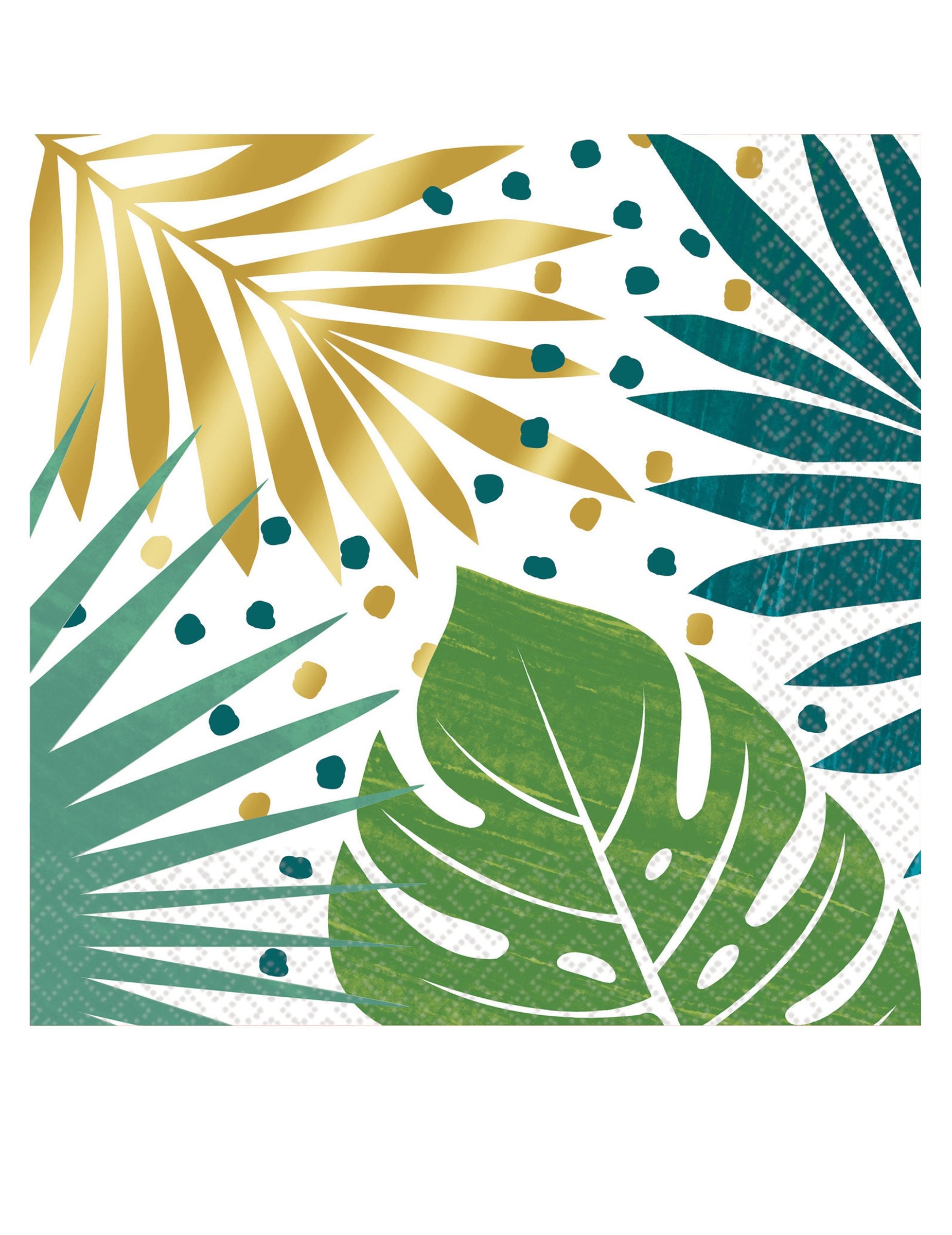 L'imprimé présente de jolies feuilles tropicales aux coloris vert et doré étincelant.