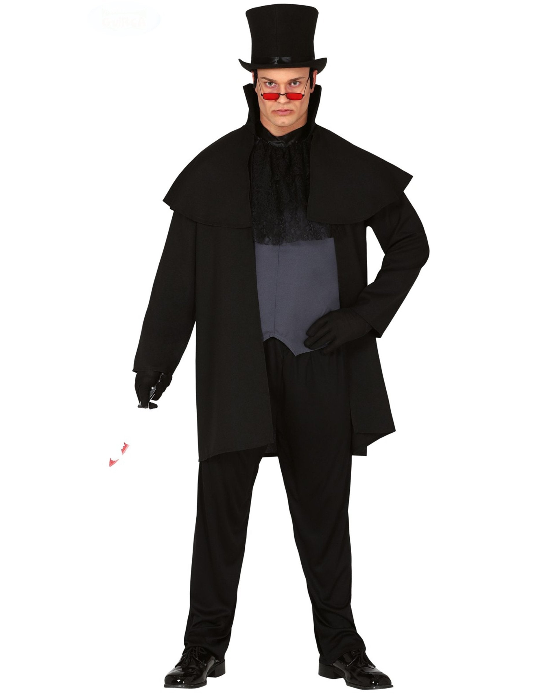 Ez a 19. századi bérgyilkos álruhát dzsekiből, nadrágból és Jabot jelmezes mellényből áll. A nadrág és a kabát fekete és széles. A jelmezes mellény szürke és fekete terméssel díszítve. Ez a szüreti jelmez tökéletes lesz egy elegáns és félelmetes Halloween estére!