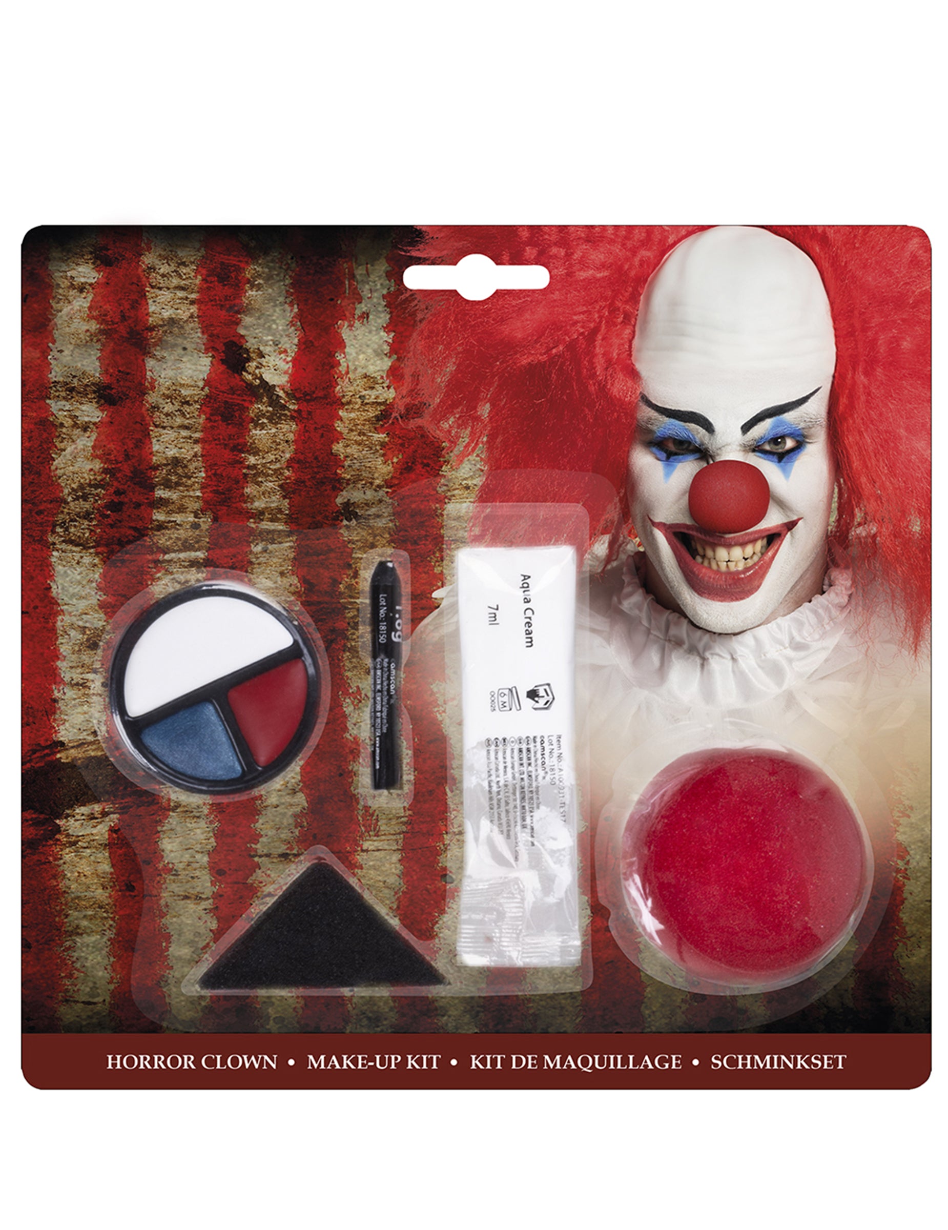 Ez a félelmetes bohóckészlet három color kaszáló szemhéjfestékből, fekete ceruzából, kb. 7 ml -es folyékony latex zsákból, piros hab orrból és egy szivacsból áll. Ezzel a teljes sminkkészlettel bohóc smink készítése Halloween alatt.