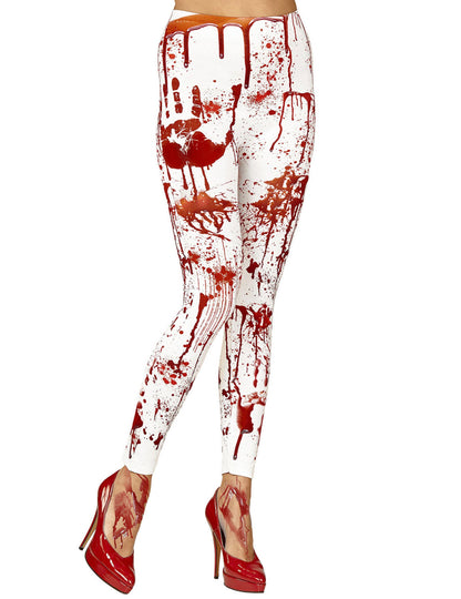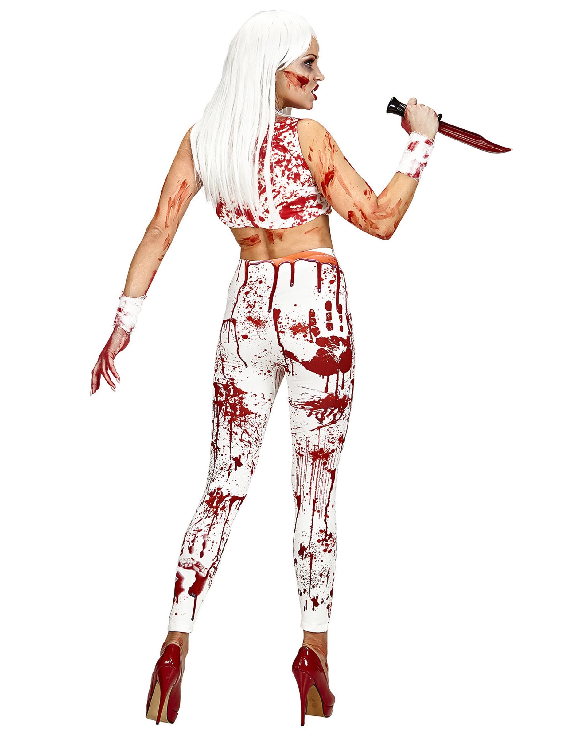 Ez a véres nadrág a nők számára készült. Fehér, vérfoltokkal, beleértve a kéz és az áramlási mintákat. Ez a nadrág magában foglalja ezeket a mintákat elöl és hátul. Ez a nadrág tökéletes lesz a Halloween véres álruhájának kitöltéséhez.