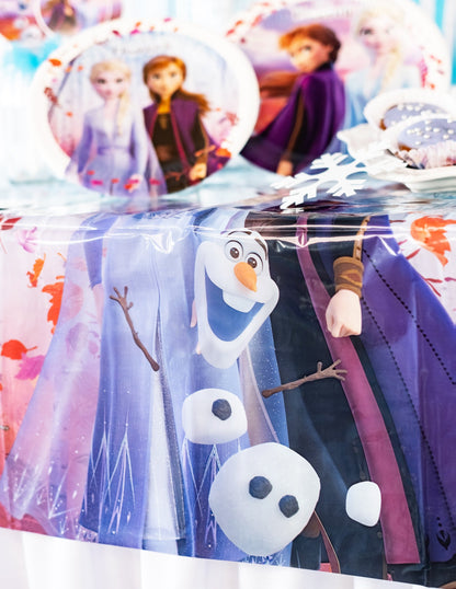 Ez a műanyag asztal hivatalos engedély alapján A Snow Queen 2 mérete 120 x 180 cm. Elsa hó királynő, nővére, Anna és Olaf jelen vannak az terítőn. Ez az asztalterítő tökéletes lesz a lánya születésnapi étkezéséhez a Snow Queen 2 témáján.