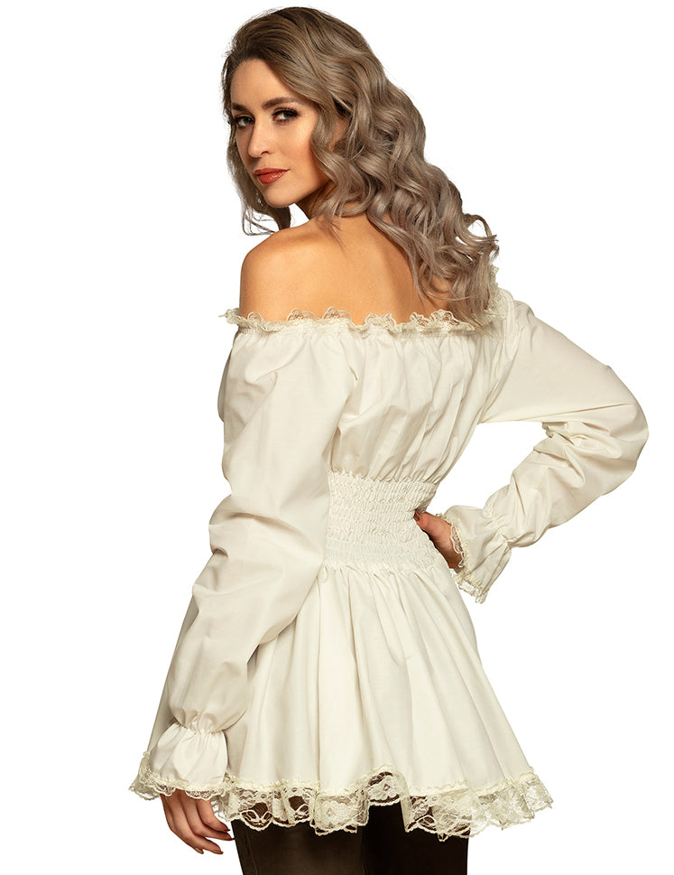 Ez a reneszánsz tunika a nők számára készült. Mérete és elasztikus gallérja feltárja a vállát. A méret tökéletesen felszerelt, ami elegáns oldalt hoz ez a ruházat. A csipke jelen van, a Syr a kiváló ing alja. Ez a nők számára ez a reneszánsz tunika tökéletesen alkalmas arra, hogy egyszerű és gyors módon álcázza Önt a következő jelmez ünnepe során!