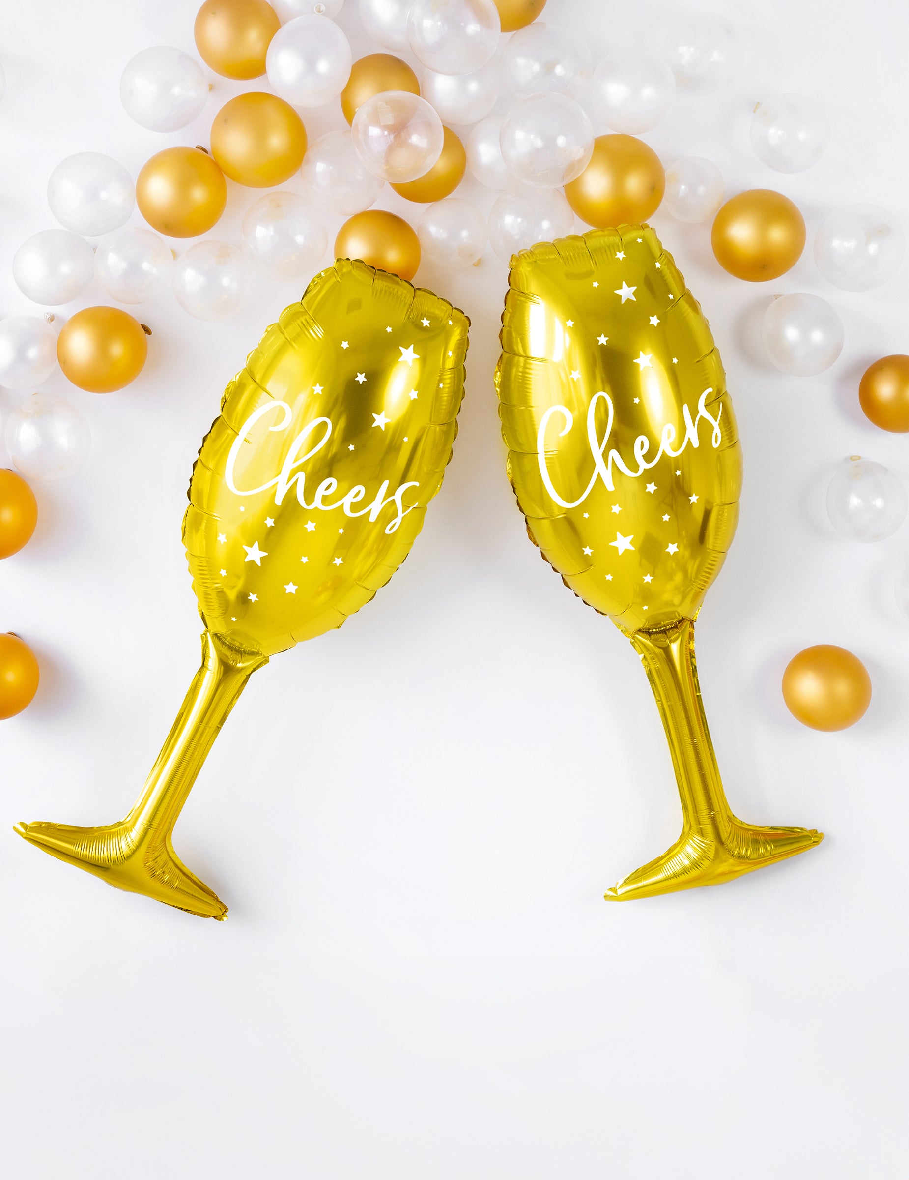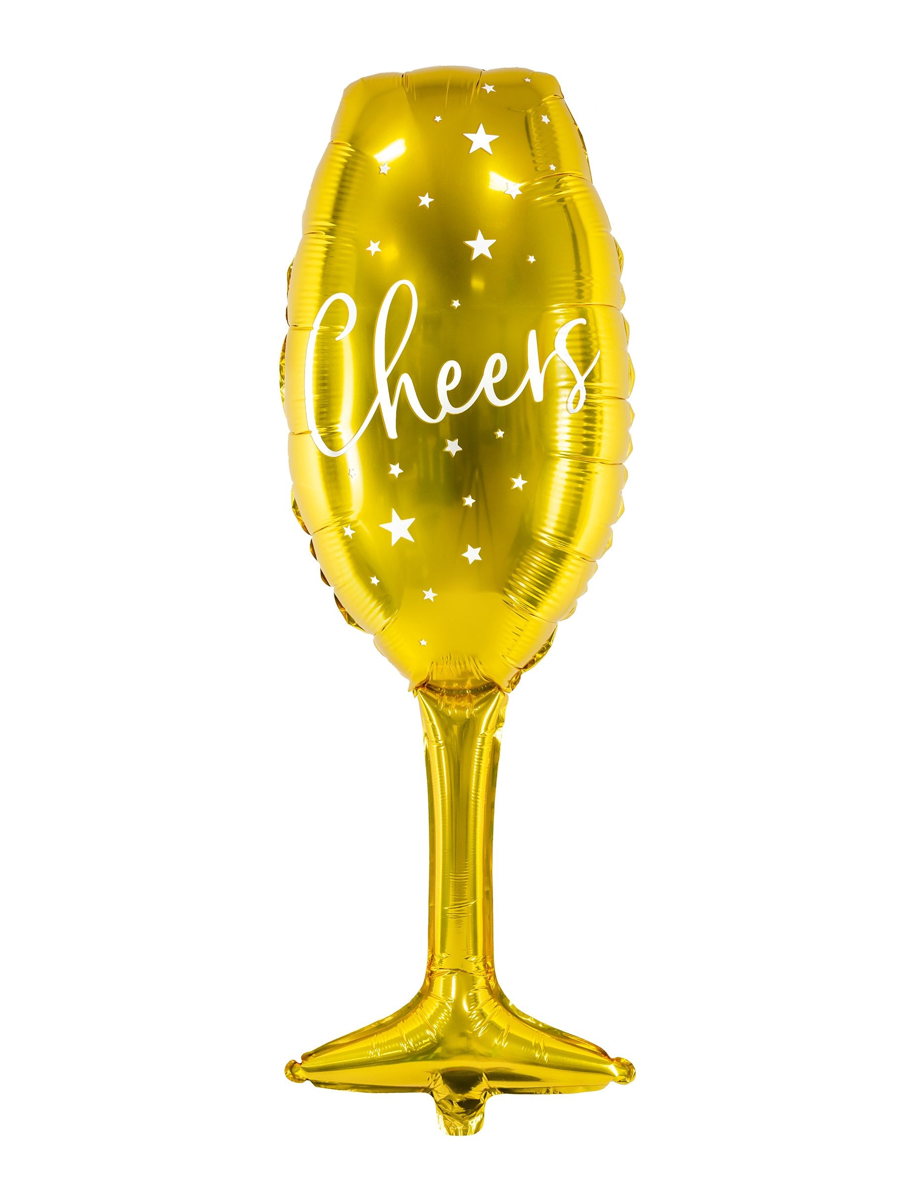 Ez az alumínium ballon körülbelül 28 x 80 cm. Aranyos színű, és a pezsgő fuvolát képviseli, a "Cheers" felirattal fehéren. Fogja be a levegőt vagy a héliumot, hogy repüljön. Ez a labda ideális lesz egy csillogó dekorációhoz az új év alkalmával!