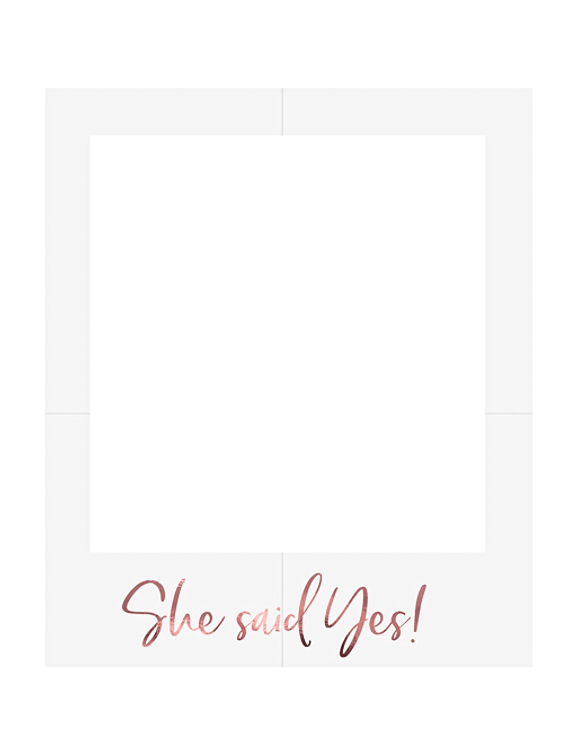 Ez a karton képkeret körülbelül 50 x 59,5 cm -t mér. Fehér színű, és viseli a feliratot: "Azt mondta, hogy igen!". Ez a képkeret tökéletes lesz egy Photobooth animációhoz egy EVJF során!