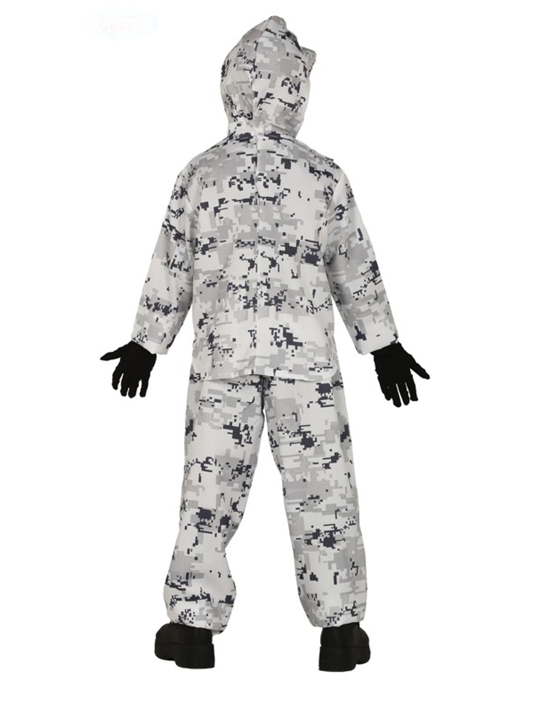 A sarkvidéki katona ezen asszisztenciója gyermekeknek szól. Felső és nadrágból (kesztyű, félmaszk, géppuska és cipő nem tartozik). A fehér színes teteje hosszú, lassú, fekete és szürke mintákkal rendelkezik. A hamis kapcsolatokkal rendelkező fekete sávok jelen vannak a ruha elején. A motorháztetőt hátul varrják. A kabáttal azonos nadrágnak két fekete színű gyerek van. A sarkvidéki katona ezen asszisztenciója tökéletes lesz a karneválhoz!