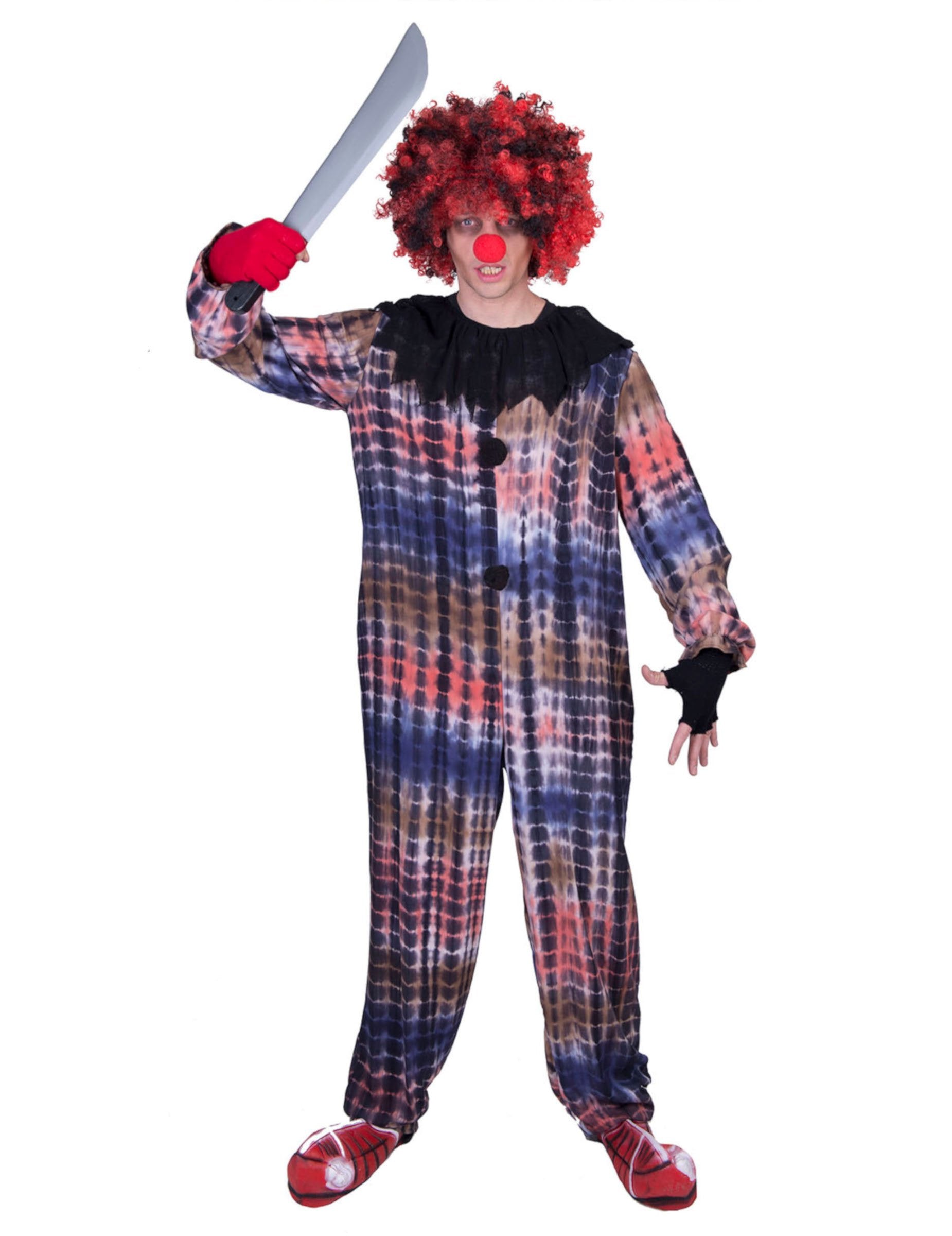 Ez a félelmetes felnőtt bohóc jelmez kombinációból áll (paróka, orr, kesztyű, kard és cipő nem tartalmaz). A bőséges kombinációt színekkel nyomtatják, elhalványult hatással. A fekete pompomok jelen vannak a mellszobor szintjén. A nyakkivágást egy nagy fekete gallér, amely tippekre vágott. Ez a jelmez tökéletes lesz a gonosz bohóc cipőjébe csúszáshoz Halloween alatt.