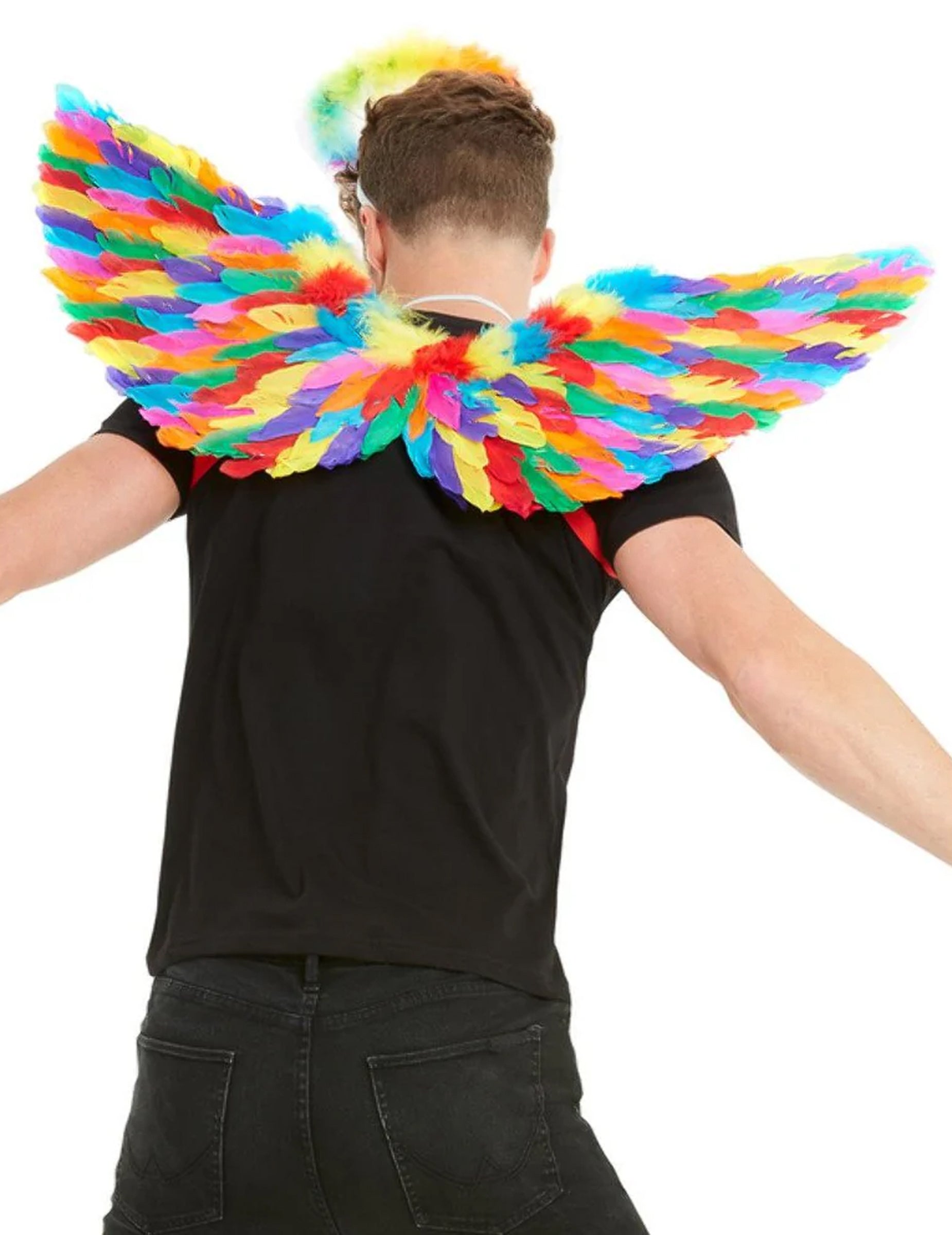 Ezeket a felnőtt szárnyakat mindkét oldalon szintetikus tollak díszítik. A tollak többszínűek, hogy visszahívják a szivárványt: rózsaszín, lila, piros, kék, zöld, sárga, narancssárga. A harisnyatartók, például a hátizsák segítségével viselik őket, és körülbelül 80 cm -t mérnek. Ezek a szárnyak egy kis színű színt hoznak a Carnival jelmezére.