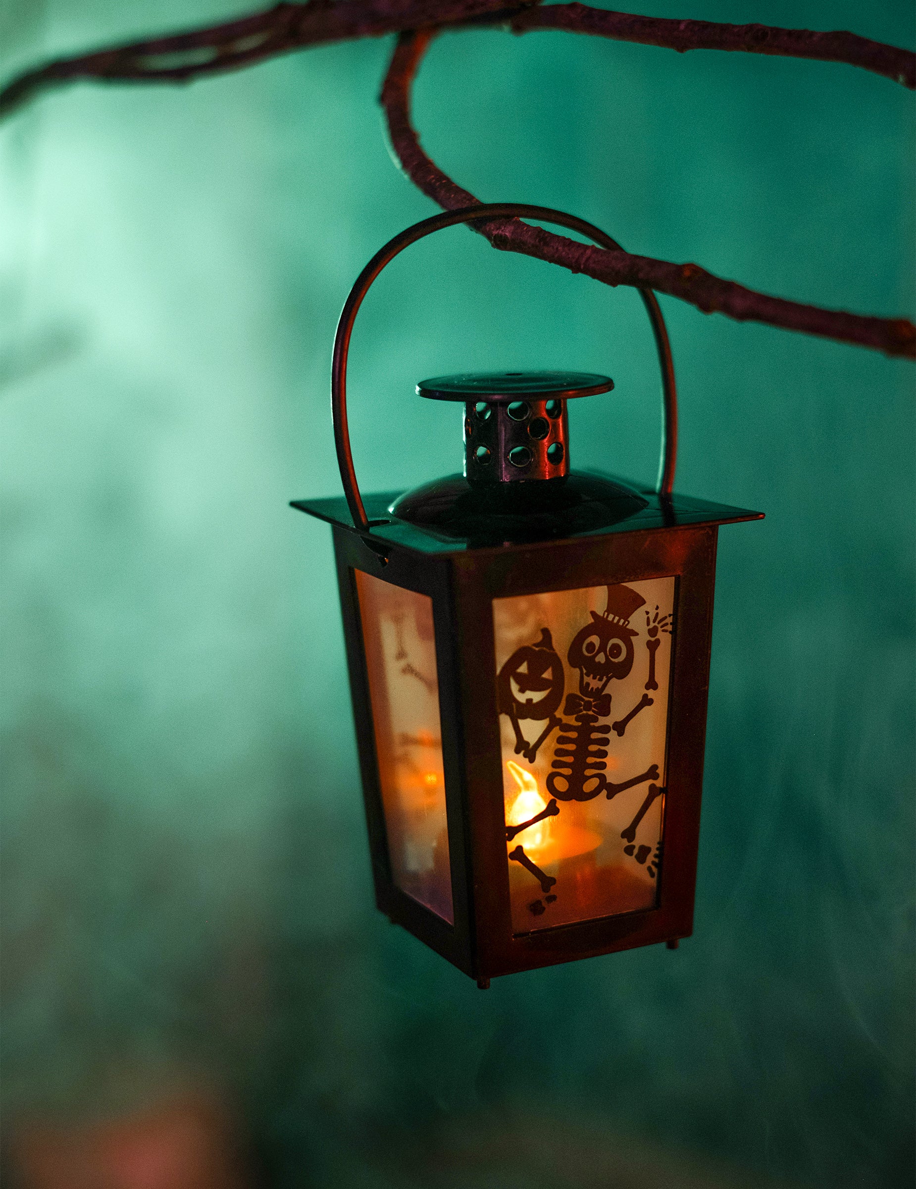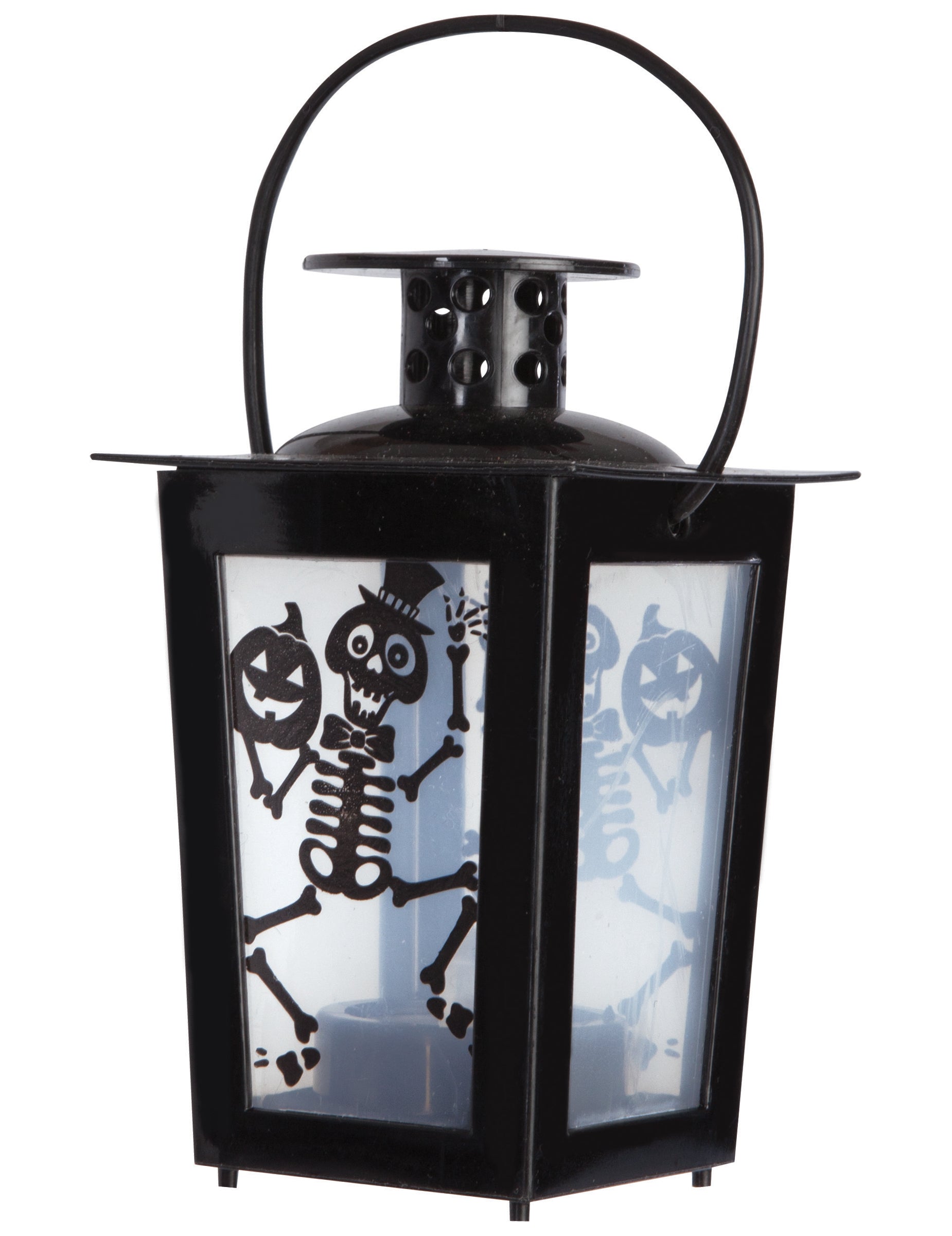 Ez 15 x 8-as világító lámpa cm Lágy, titokzatos fényt áraszt, amely tökéletes egy sikeres halloweeni hangulat megteremtéséhez. Fényes fekete szerkezete átlátszó falakat vesz körül, amelyeket táncoló csontvázak és nevető tökök díszítenek, tökéletesen felidézve a szörnyek éjszakájának ünnepi szellemét.