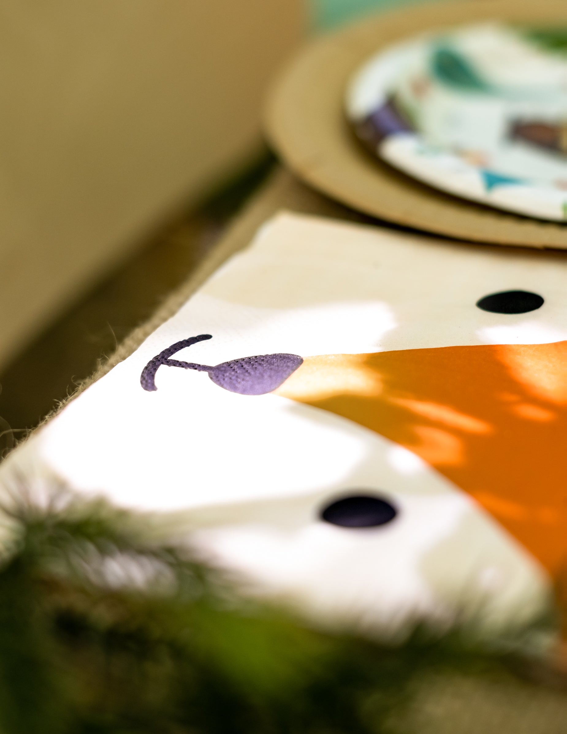 Aranyos mintával illusztrálva róka Narancssárga és bézs árnyalataiban gondosan kidolgozott részleteket mutatnak, mint például az orr és a fekete szemek. A törölközők körülbelül 33 x 33-as formátumot képviselnek cm miután teljesen kibontakozott.