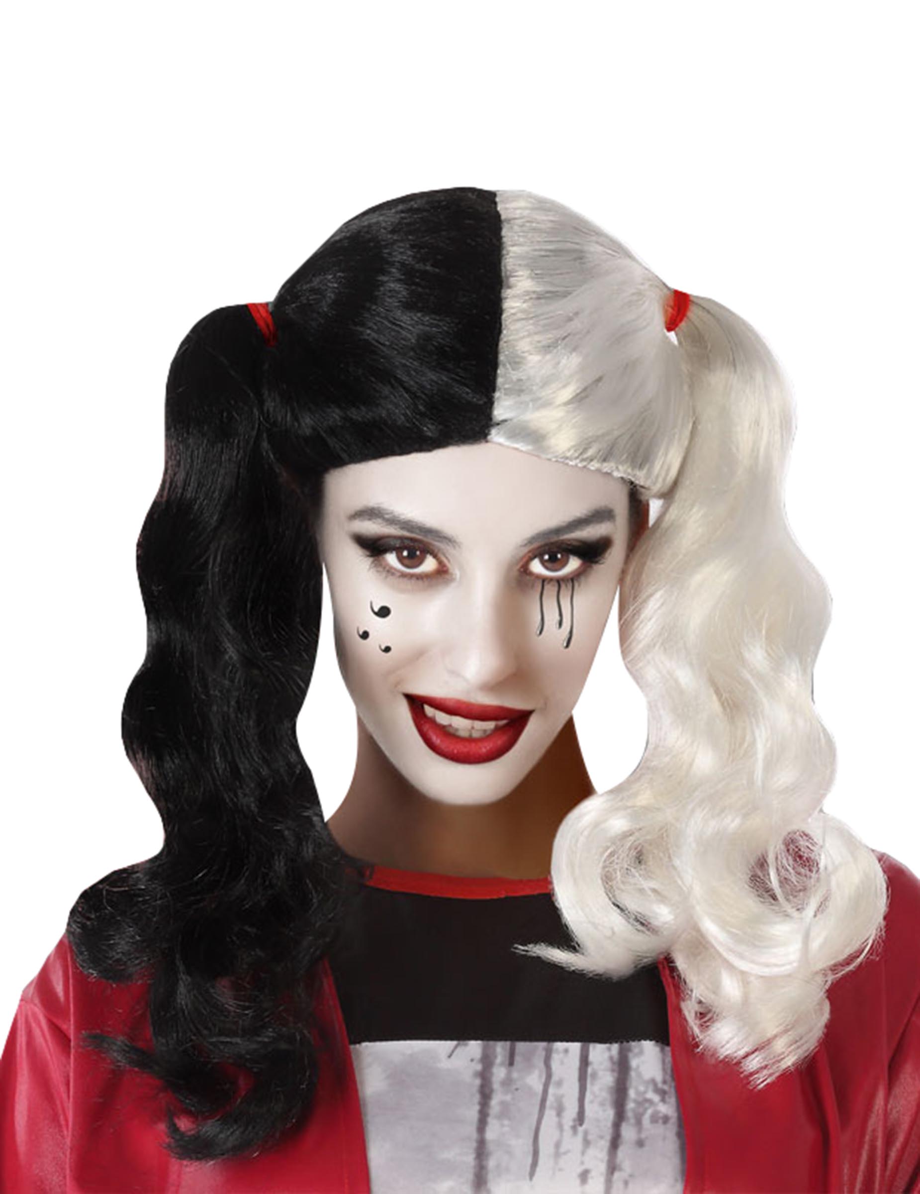 Ennek az Arlequin parókáknak a nők számára hosszú paplanok vannak. A fej egyik oldala fehér, a másik pedig fekete. Ez a paróka tökéletes lesz a Halloween Halloween Hallowean jelmezének befejezéséhez.