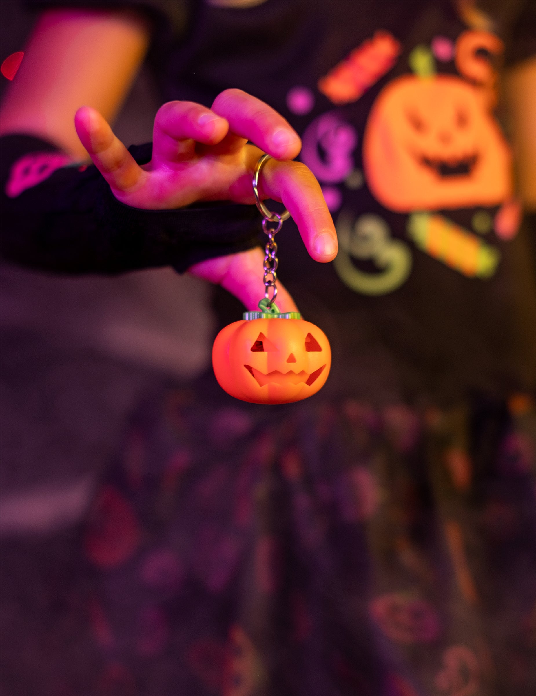 Ez a tök alakú kulcstartó narancssárga. Elegendő lesz a kulcstárló megvilágításához, hogy megvilágítsa a tököt. Ez a fényes tökkulcs ajtó eredeti lesz a kulcstartón a Halloween estén!