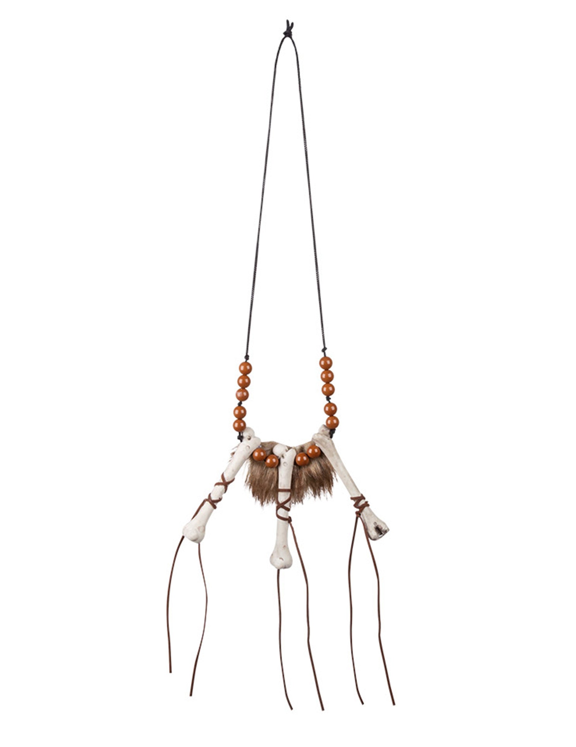 Ez a voodoo nyaklánc felnőtteknek szól. Míg a barna gyöngyökben a nyakláncot elsősorban három hamis csonttal és tollakkal díszítik/ tökéletes a Voodoo boszorkány vagy a steampunk álruhájának kitöltéséhez, a Vaudou Os nyaklánca szenzációt fog okozni a következő Halloween alatt!