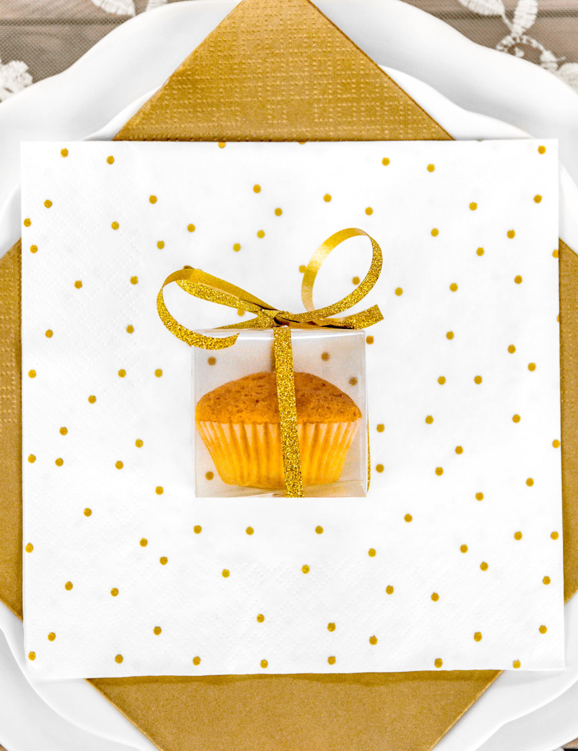 Elegáns tálalásért tegyél bele egy macaront vagy mini cupcake-et, majd kösd össze az egészet egy díszes szalaggal. Már csak annyi a dolgod, hogy a dobozt a tányér közepére helyezd, hogy teljes legyen a teríték.