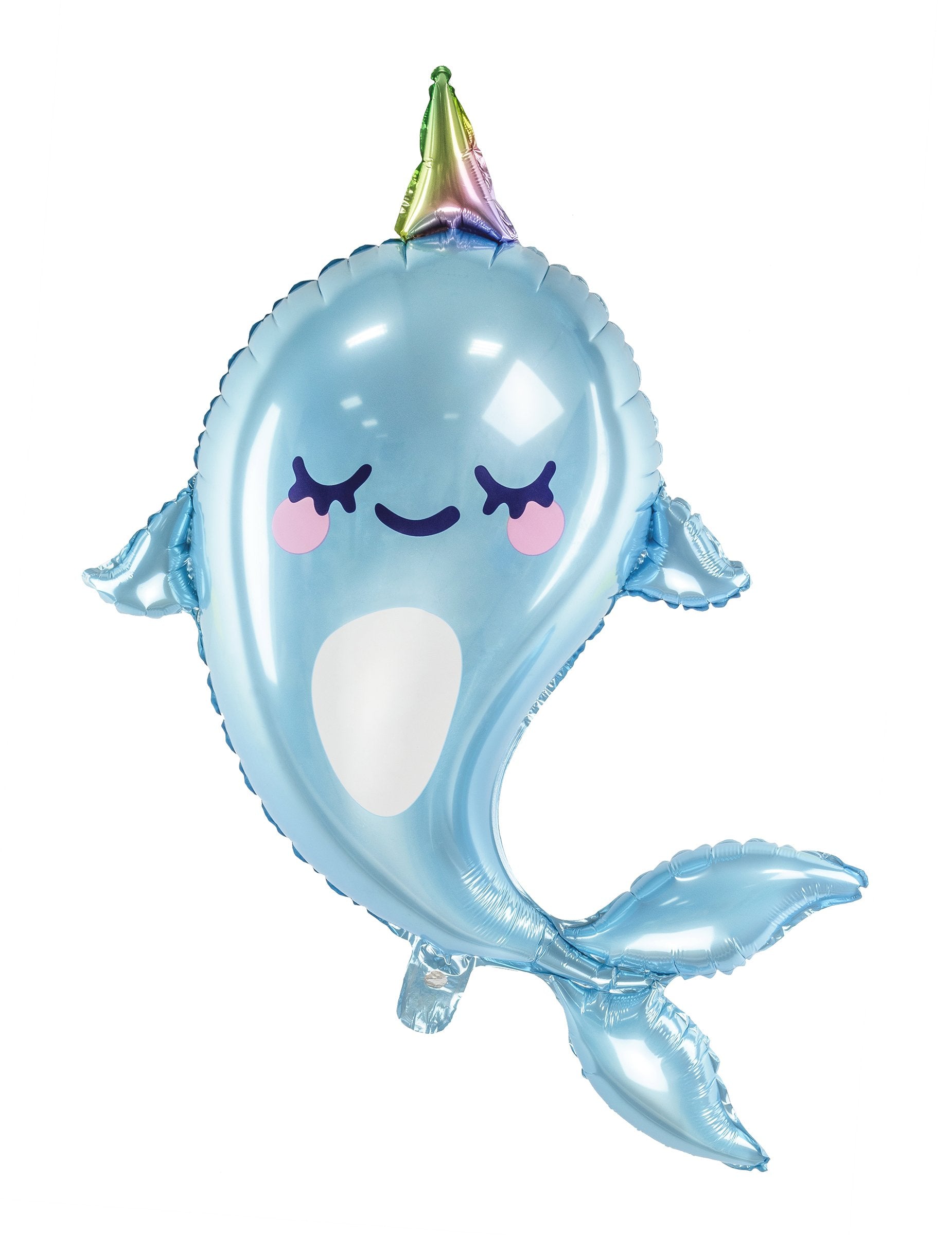 Ez az óriási ballon alumíniumból készül, és körülbelül 53 x 87 cm -t mér. A felfújás után ez a labda imádnivaló kék narval formájában, csukott szemmel és kis rózsaszín arccal. Díszít egy csodálatos, többszínű kürtöt. Ez az óriási Narval labda tökéletes lesz a tengeri dekoráció befejezéséhez a születésnap alkalmával!