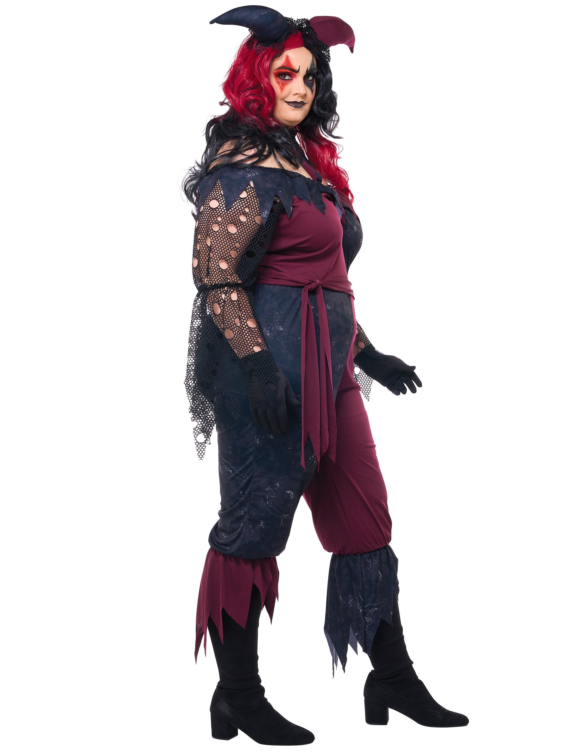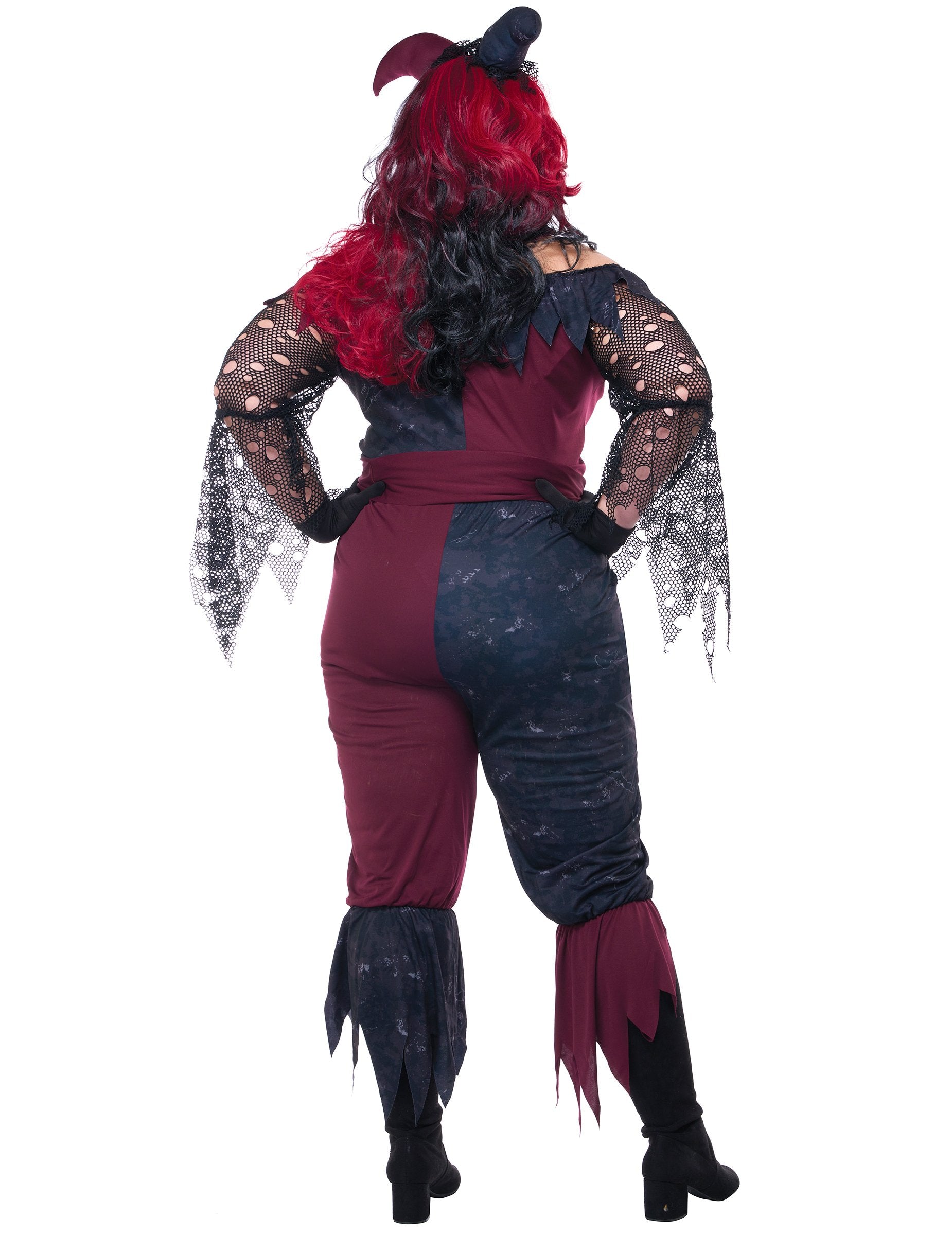 Ez a pszichopatikus Joker jelmez a nők számára készült. Ez magában foglalja a tetejét, a nadrágot, a nyakát és a fej díszítését (a parókát, a cipőt, a kesztyűt és a smink nem szerepelnek). A jelmez teteje félig fekete, félig piros. Megalapozza a vállát csupasz, és a gallérból lóg, valamint az ujjak fekete tüllje. A nadrág vörös és fekete is, piros szalaggal, amely övként szolgál. Helyezze a vörös és a fekete Arlequin átjárót, valamint a fejkészletet két szarvral, hogy befejezze ruháját. Ez a Joker Psychopath jelmez a nők számára tökéletes lesz a Halloween -hez!
