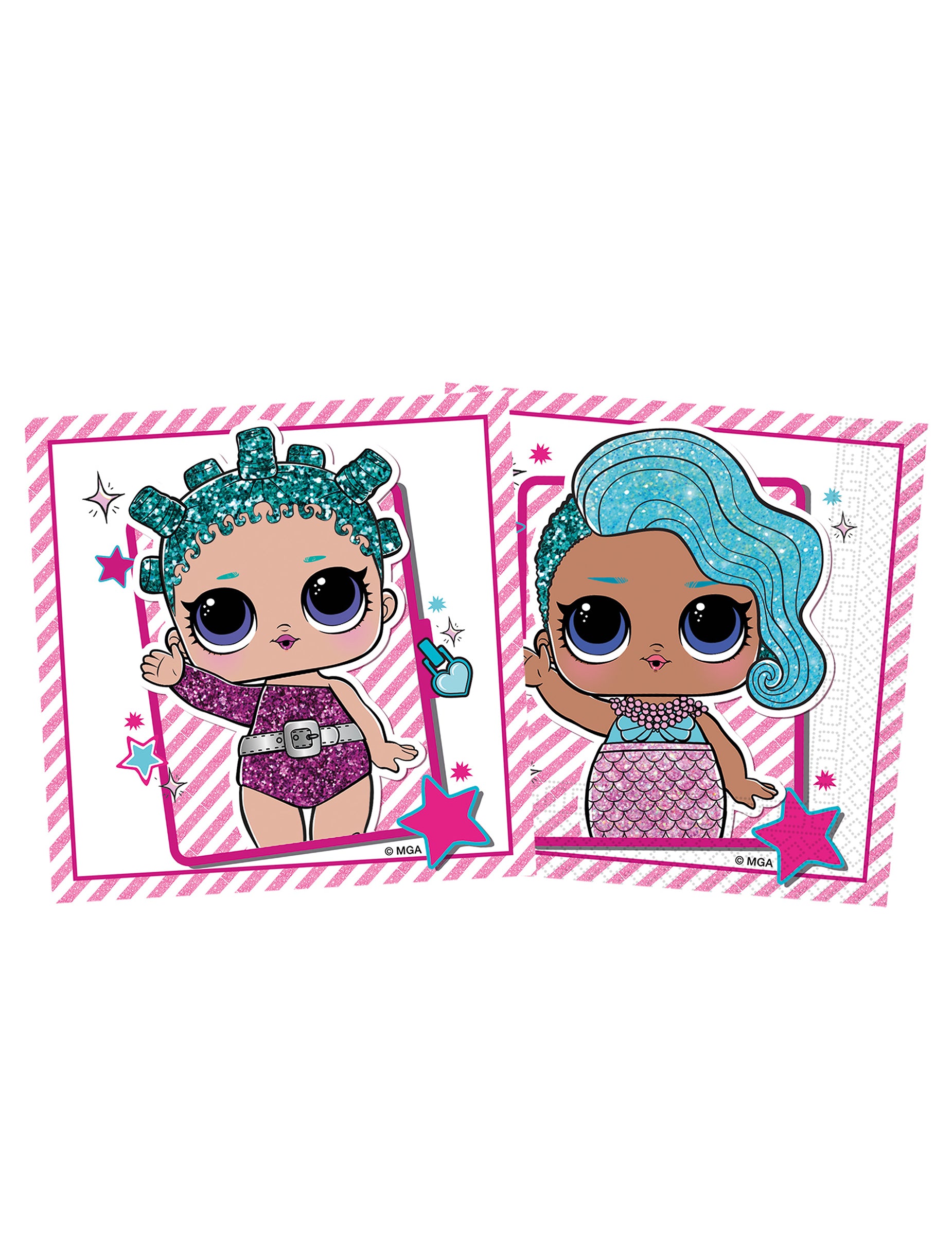 Hivatalosan engedélyezett LOL meglepetés™, a híres babákat ábrázolják rózsaszín és fehér háttér előtt.