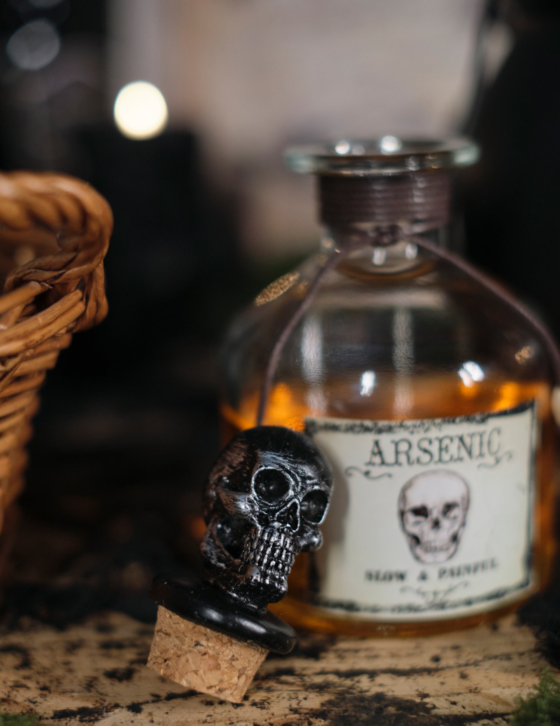 A 16 -mal cm Magas, ez az üveg egy kísérteties retro címkével és egy faragott koponya alakú sapkával rendelkezik, hangsúlyozva annak zavaró megjelenését. Kötélbe csomagolva és kicsi, átgondolt részletekkel felszerelve, tökéletesen kiegészíti a régi mérgezett szekrények ihlette dekorációt. Tökéletes egy sötét és magával ragadó beállítás gazdagításához.