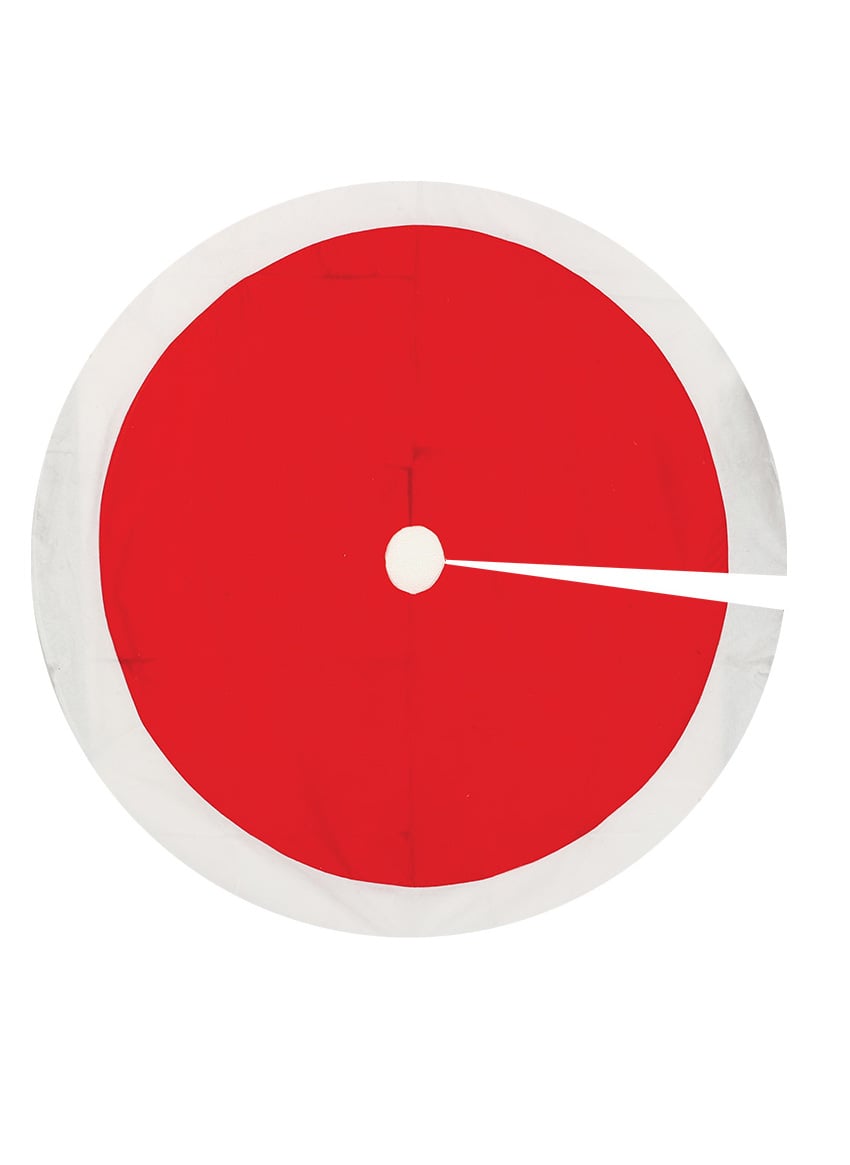 90 átmérőjű cm, Ez fenyőfa szőnyeg A piros és fehér árnyalatok a ruházatára emlékeztetnek. MikulásSelymesen puha és kényelmes anyaga ideális a láb elegáns befedésére. karácsonyfa az ünnepi időszakban.