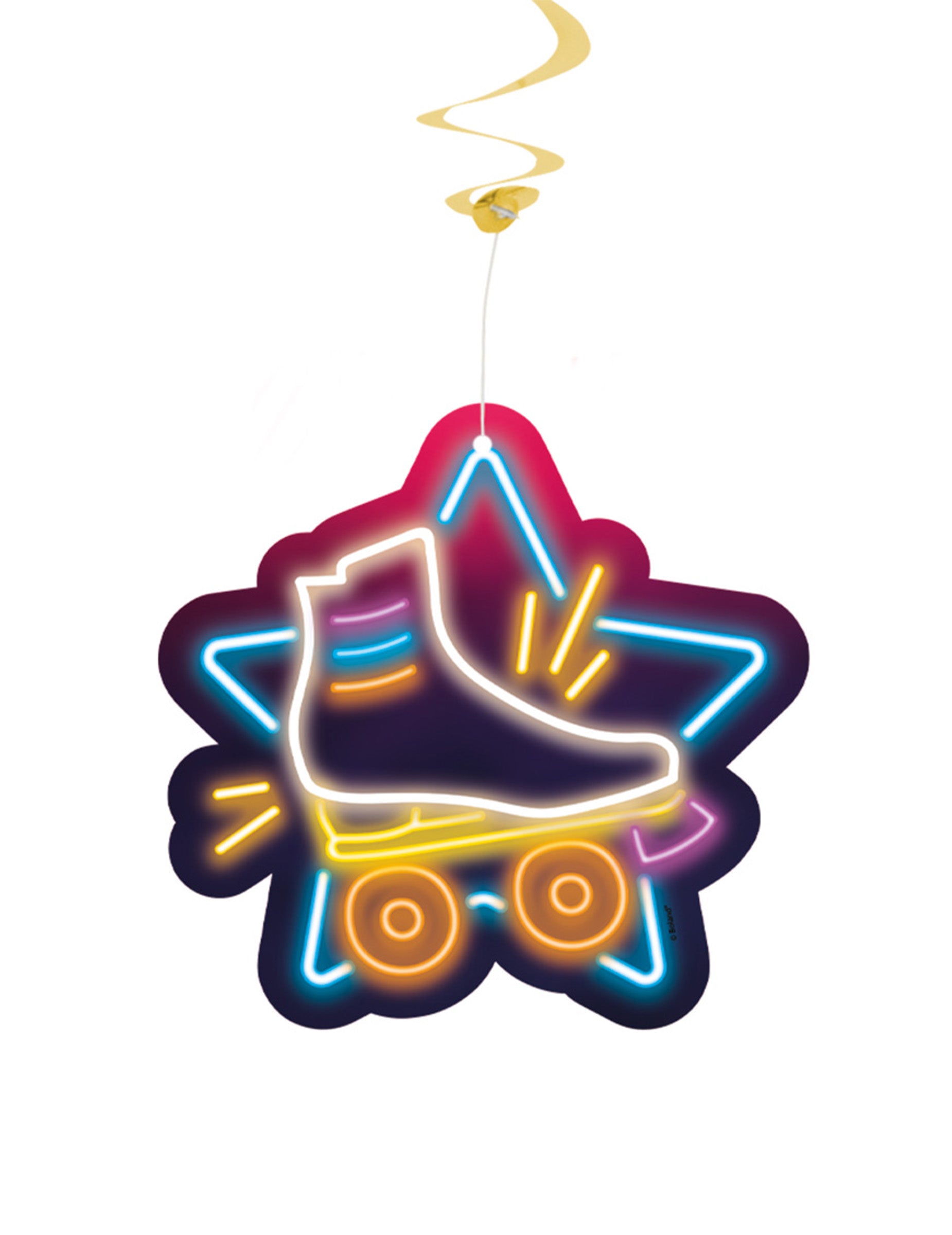 Chaque pièce se compose d'une spirale dorée élégante ornée de vignettes affichant le message « disco fever » ainsi qu'un patin à roulettes au look néon coloré.