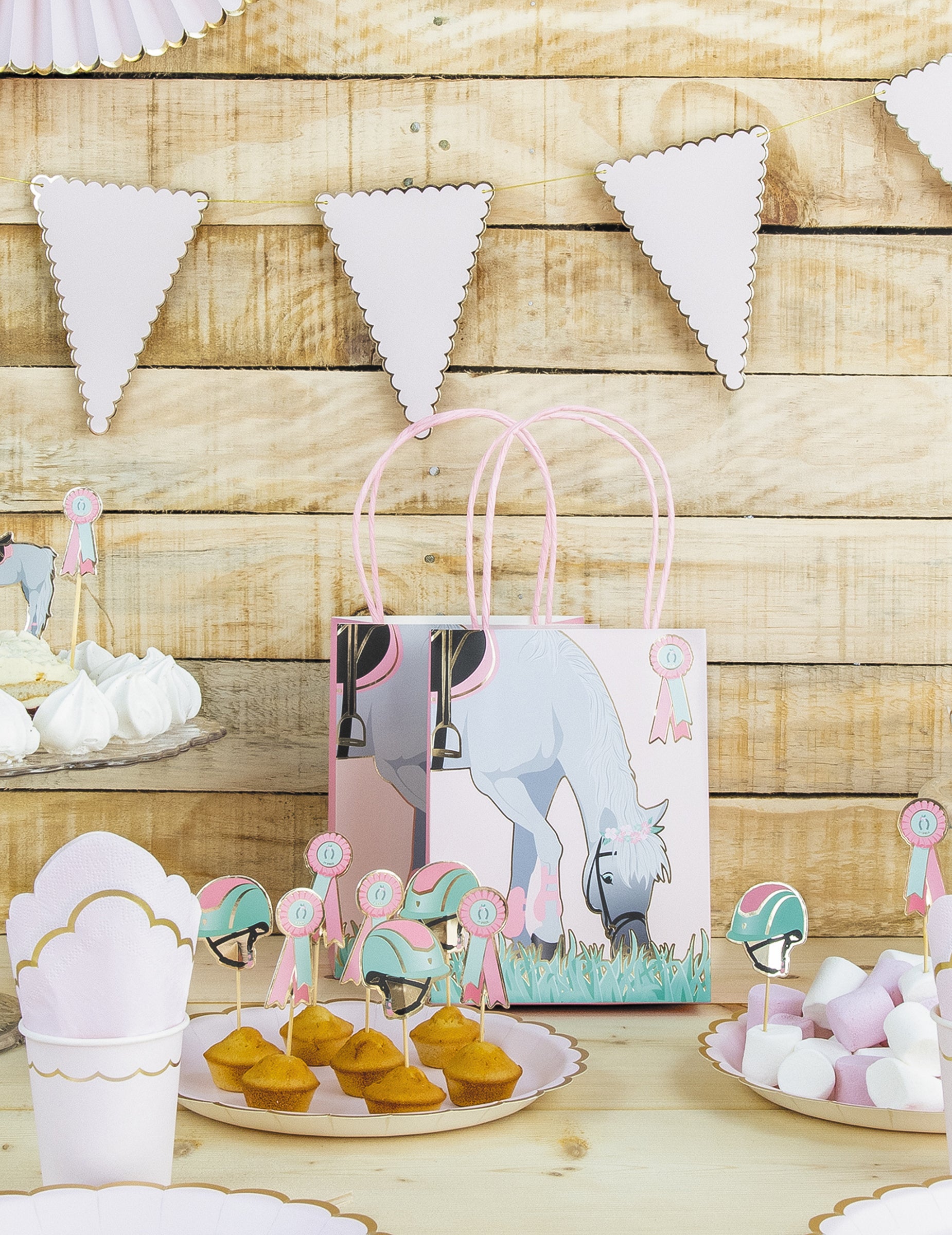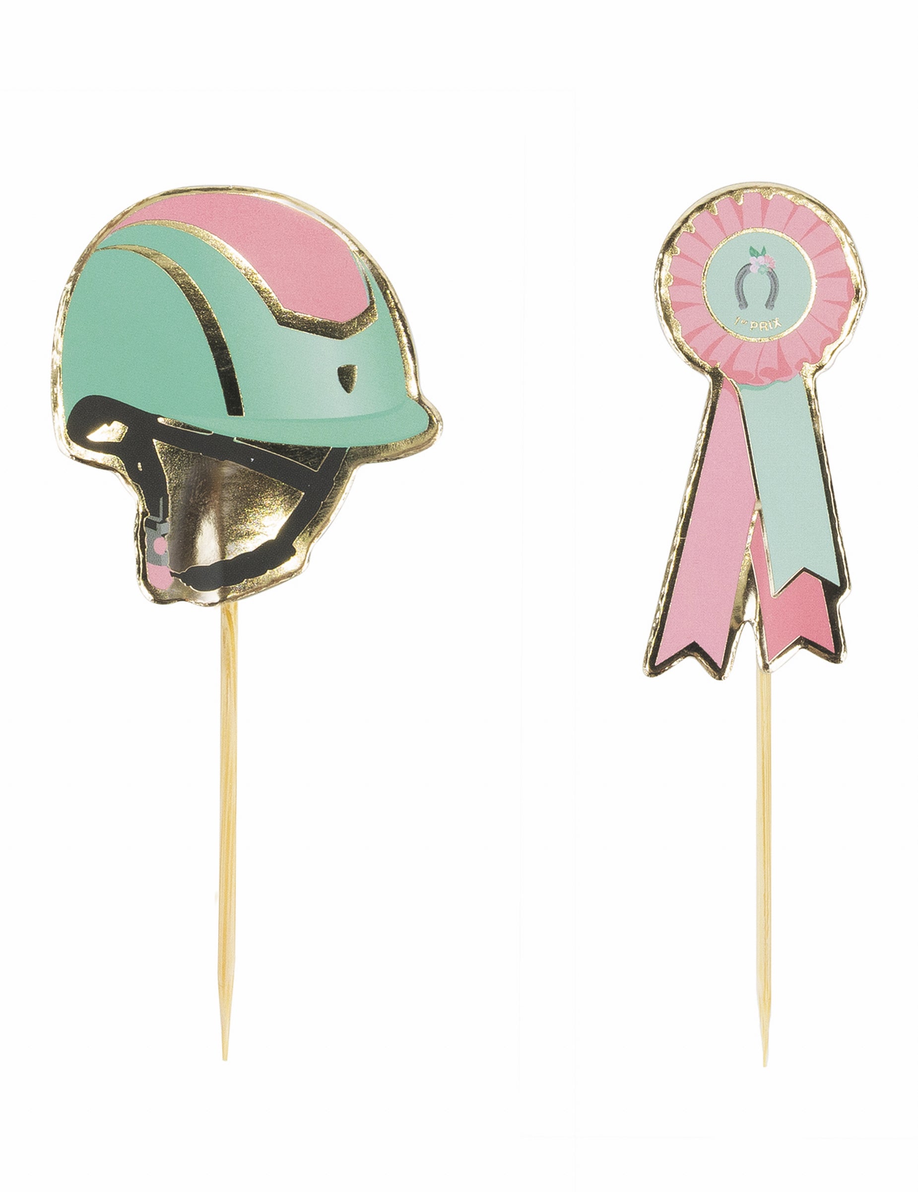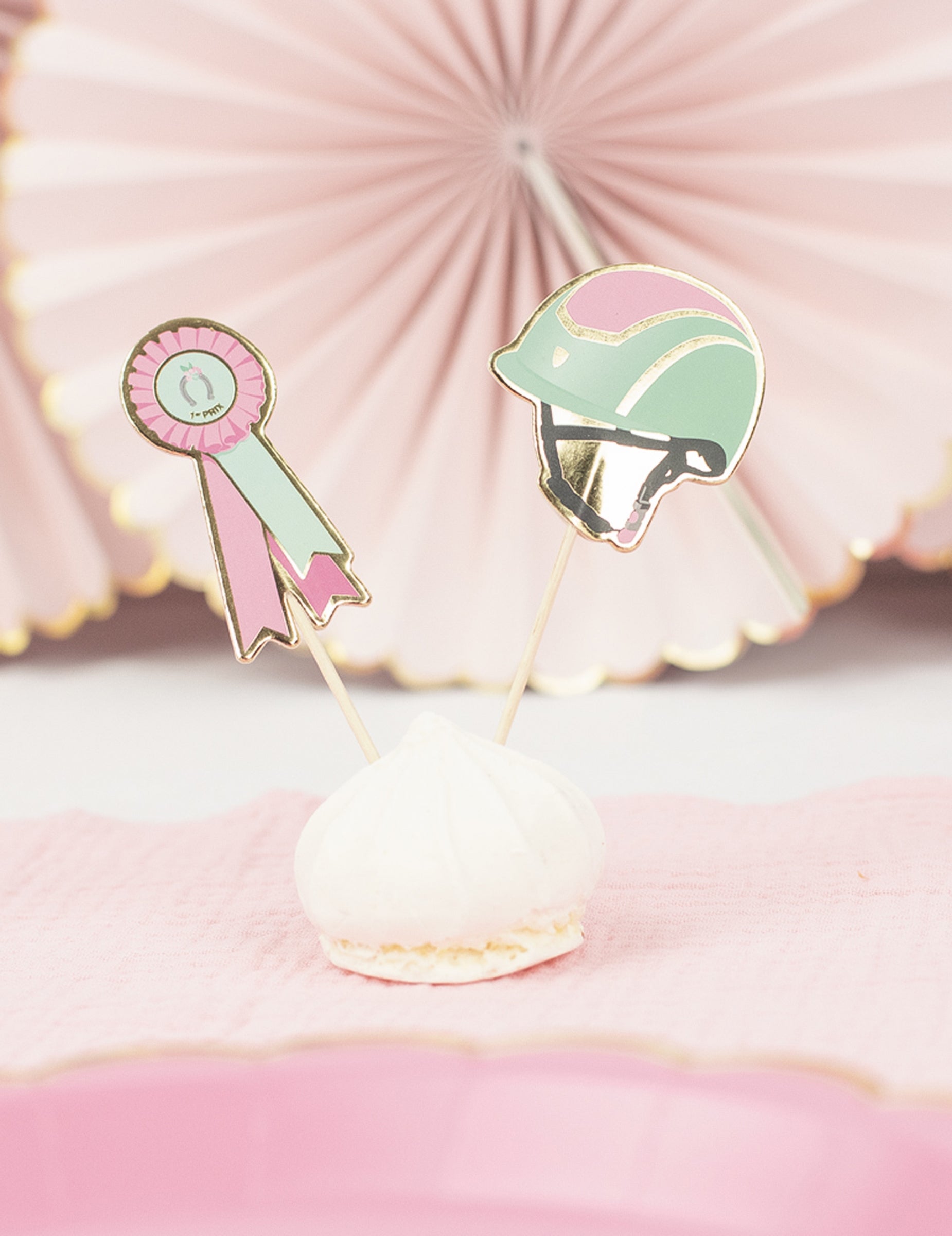Adjon egy csipetnyi lovas stílust az asztalához ezzel a 10 darabos készlettel koktélválogatás Fából készült. Minden botot egy lovaglósisak vagy egy győzelmi szalag díszít. Ezek az eredeti kiegészítők feldobják a kis fours-aidat és a büféasztalaidat. lovaglás témájú születésnap sikeres.