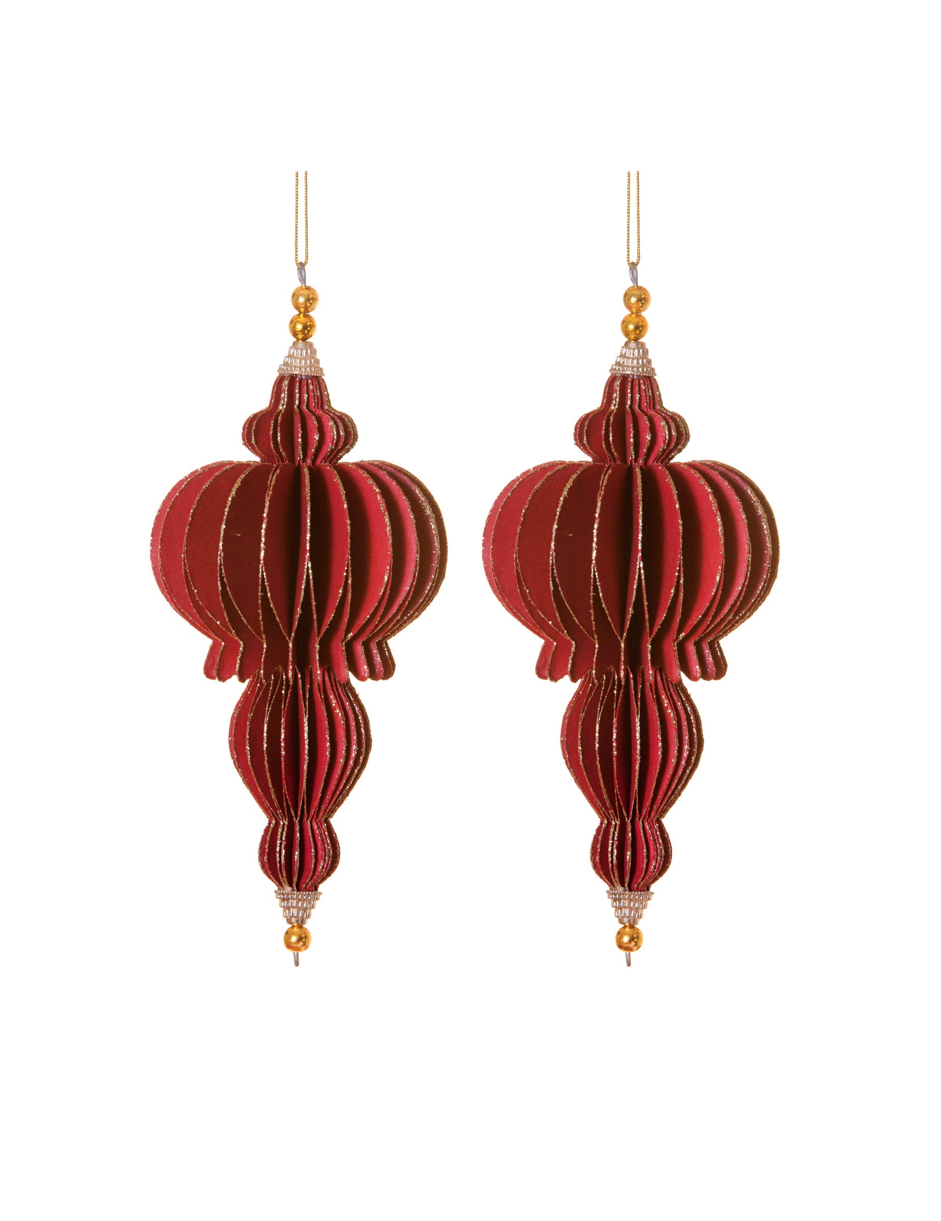Dobd fel az ünnepi fádat ezzel a 2 darabos szettel felfüggesztések körülbelül 13 cm. Origami stílusban tervezett darabok, elegáns vörös árnyalattal, arany díszítéssel kiemelve. Tökéletesek dekoratív... karácsonyi egyedi, ezek origami függő dekorációk mélységet ad majd a belső térnek.