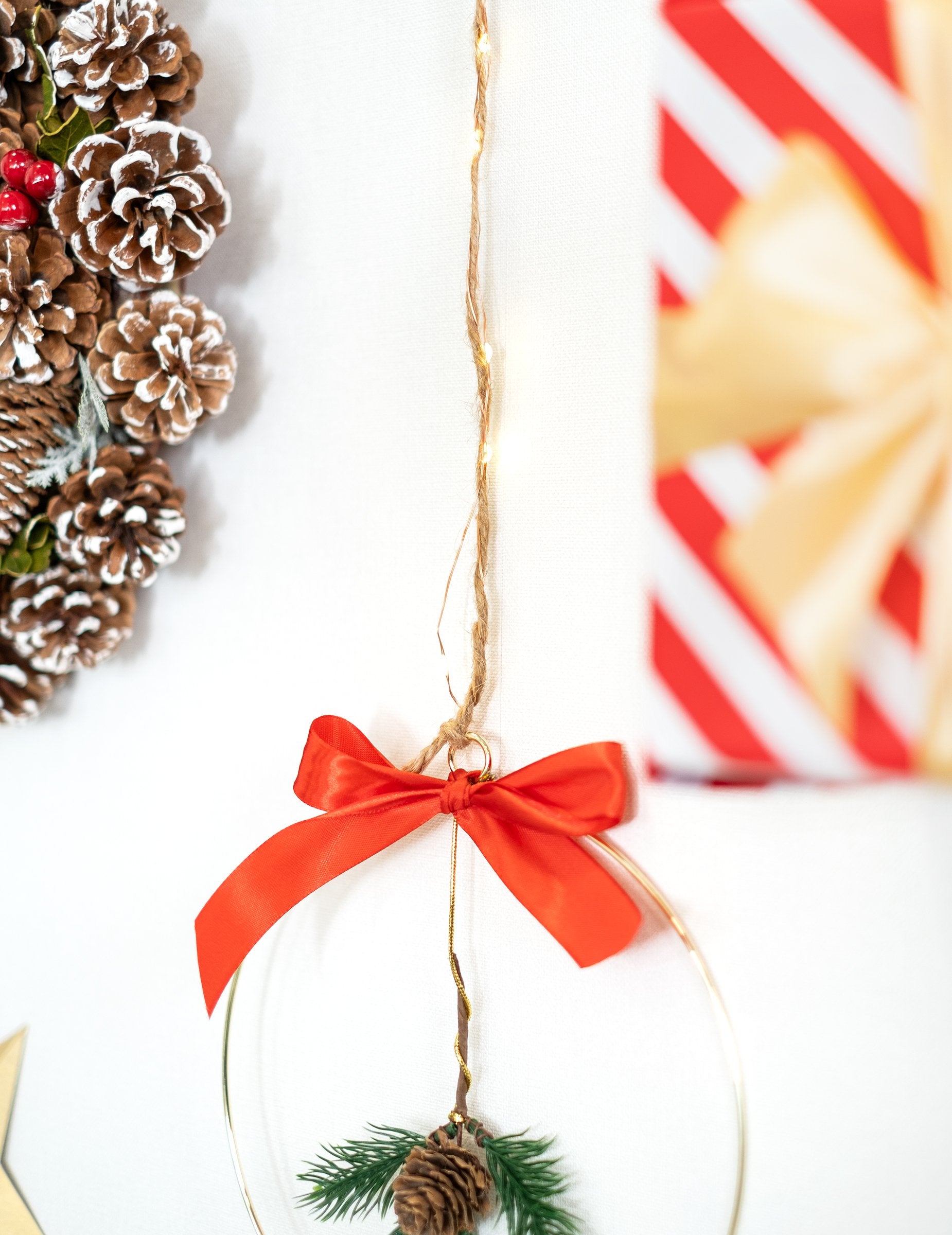 Meleg fehér könnyű fenyő koszorú 10 m