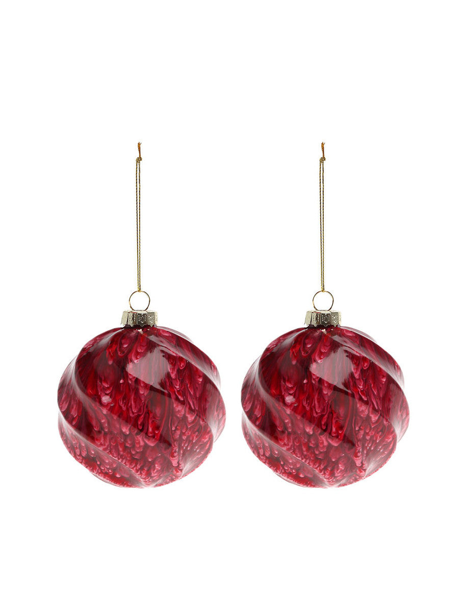 2 márványozott, piros üveg gömb 8 cm