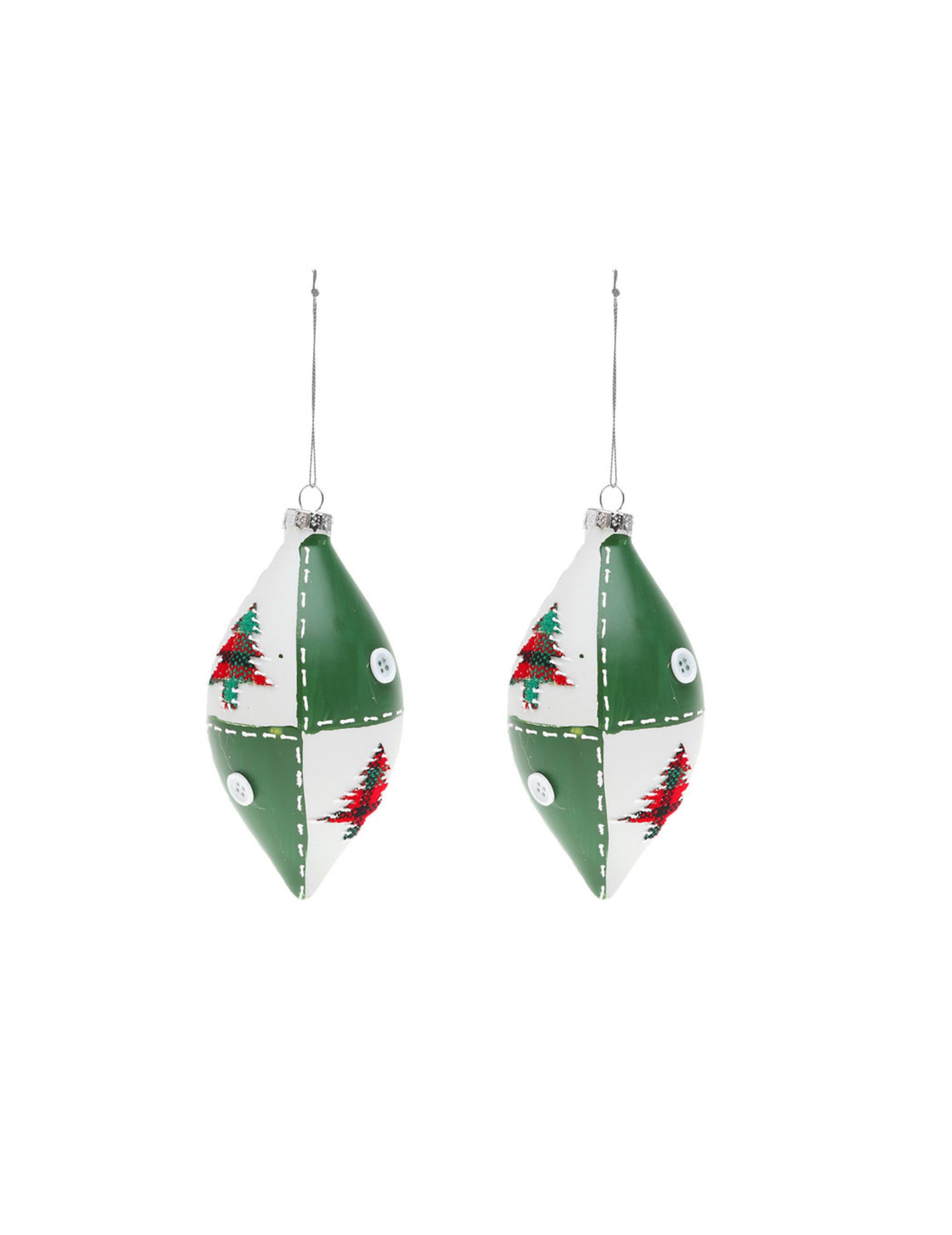 2 fehér és zöld üveggömb csepp 13 cm
