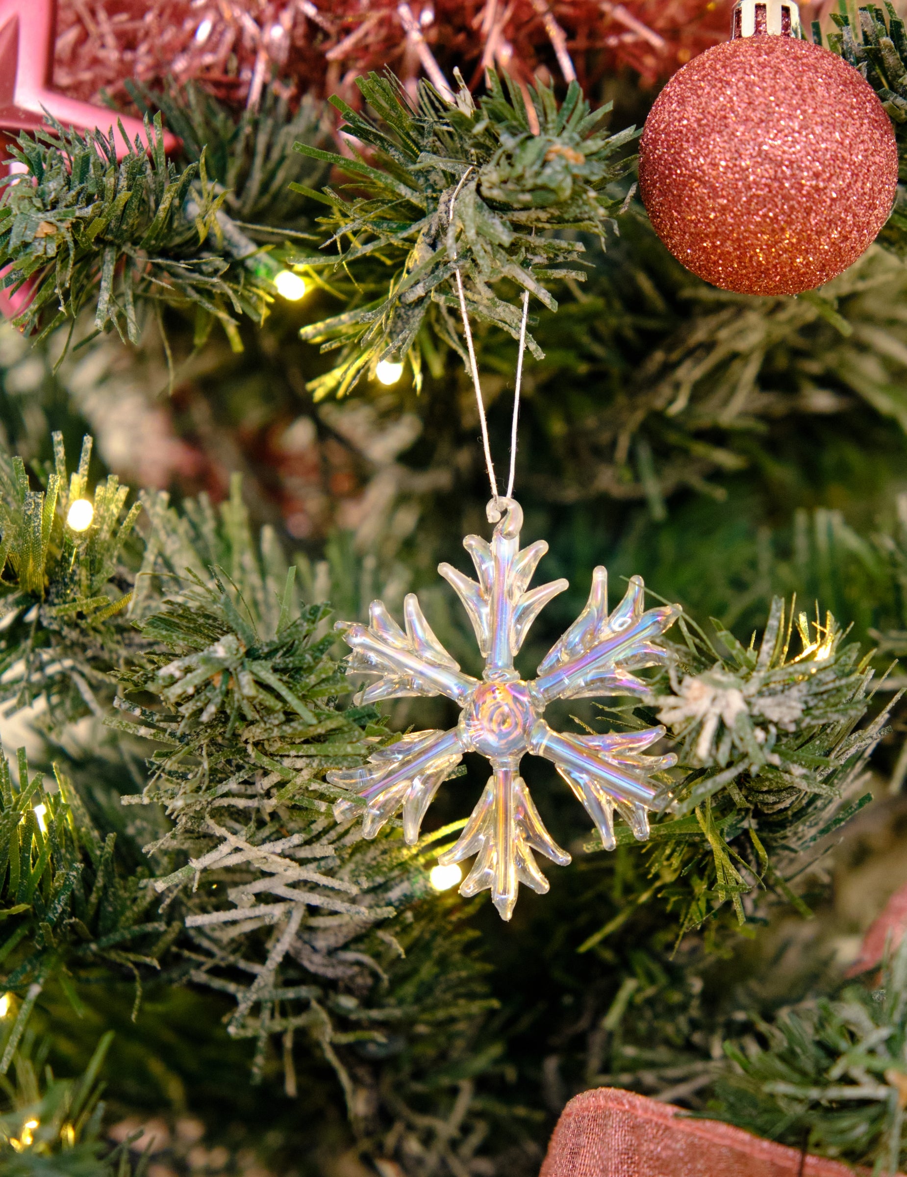 3 irizáló üveg hópehely felakasztásra 7 cm fenyőfára