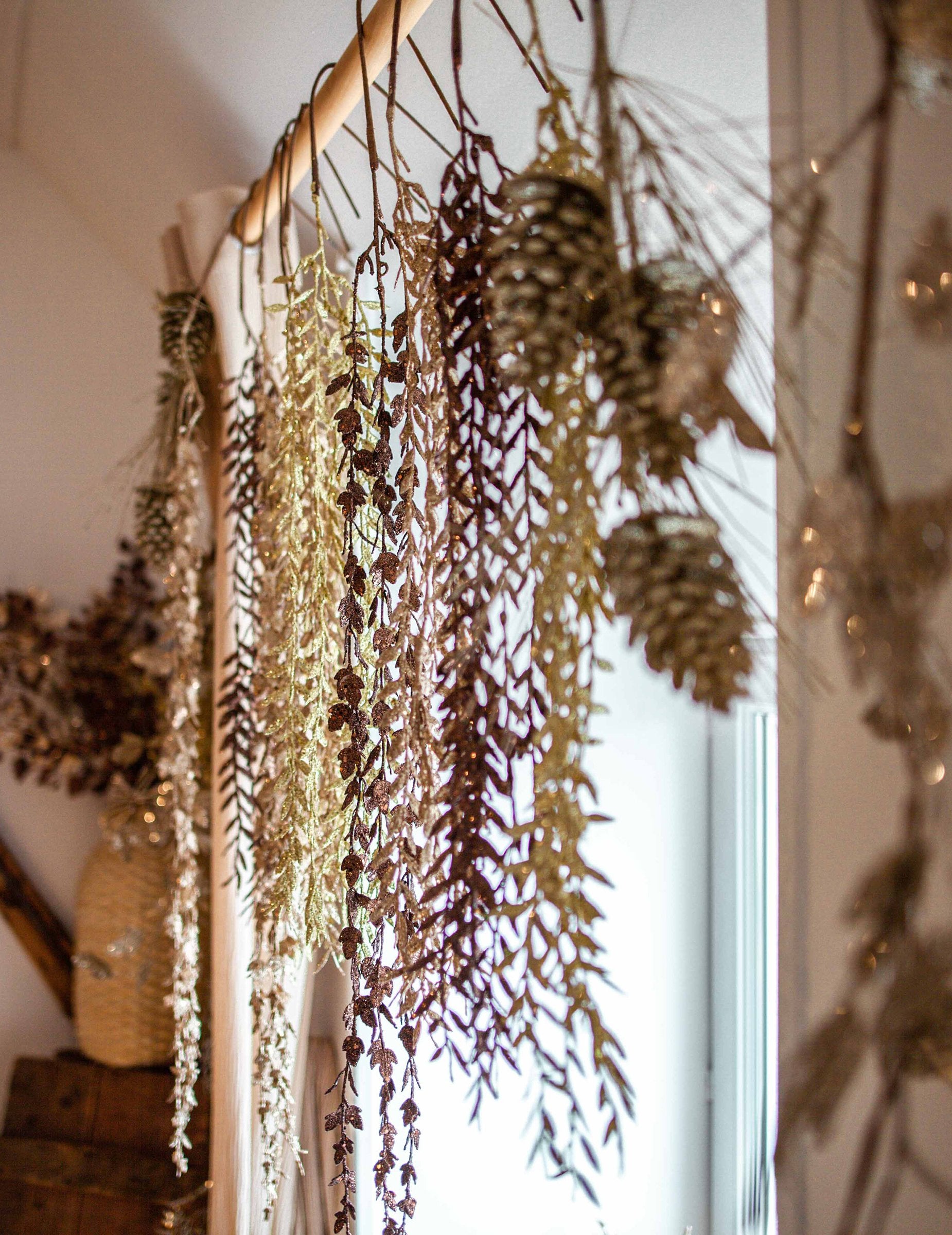 Dobd fel a belső teredet ezzel lombozat leereszkedés 90 hosszúsággal cm. Csokoládé árnyalatú csillámokkal díszítve, meleg és csillogó hatást kelt. Sokszorozd meg ezeket! csillogó ágak egy elegáns növényi függöny létrehozásához, amely tökéletes a hangulat megteremtéséhez karácsonyi mágikus.
