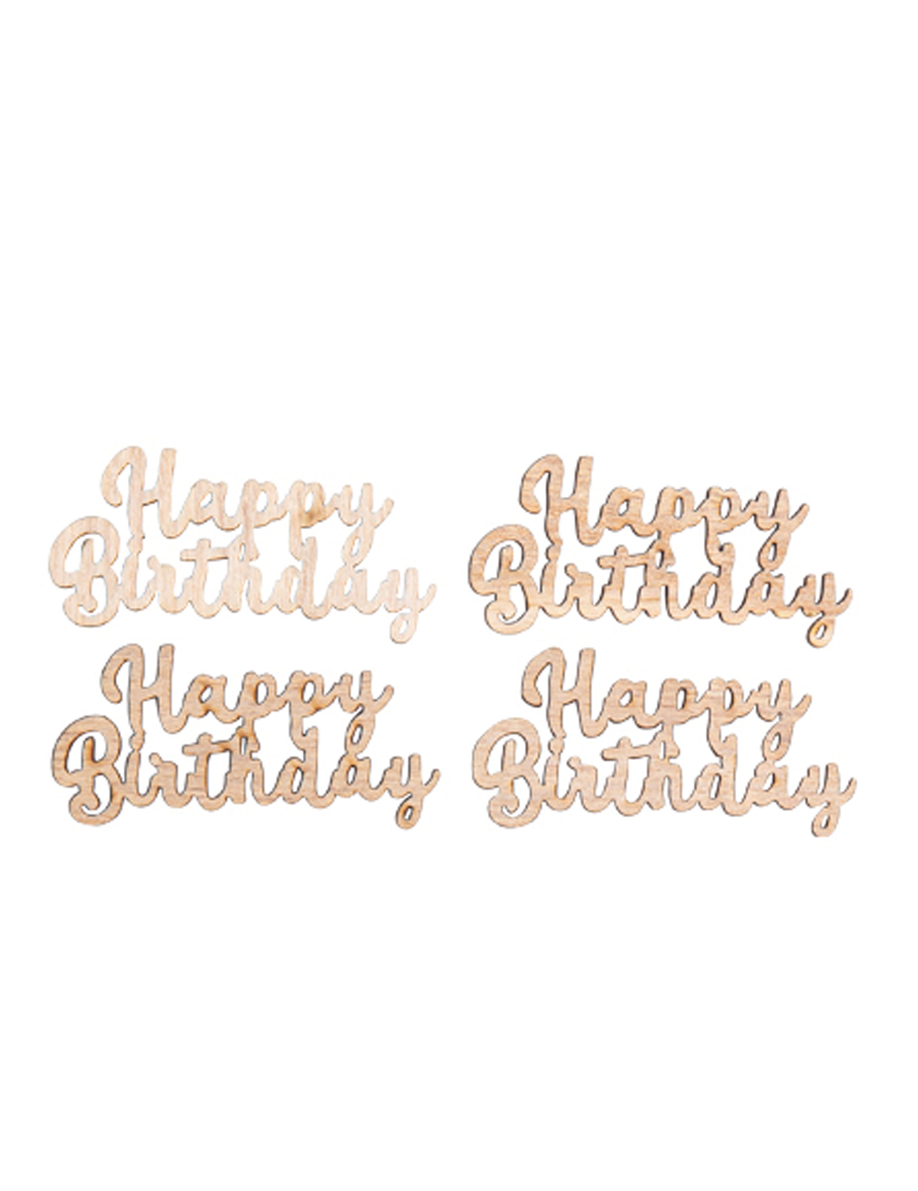 Díszítsd a buli helyszínét ezzel a 4 darabos zacskóval konfetti Valódi fából készült. Minden darab mérete 6 x 3 cm és megformálja a szöveget" Boldog születésnapot! Ez a készlet ideális az asztalon való szétszóráshoz.születésnap vagy egy elegáns büfé.